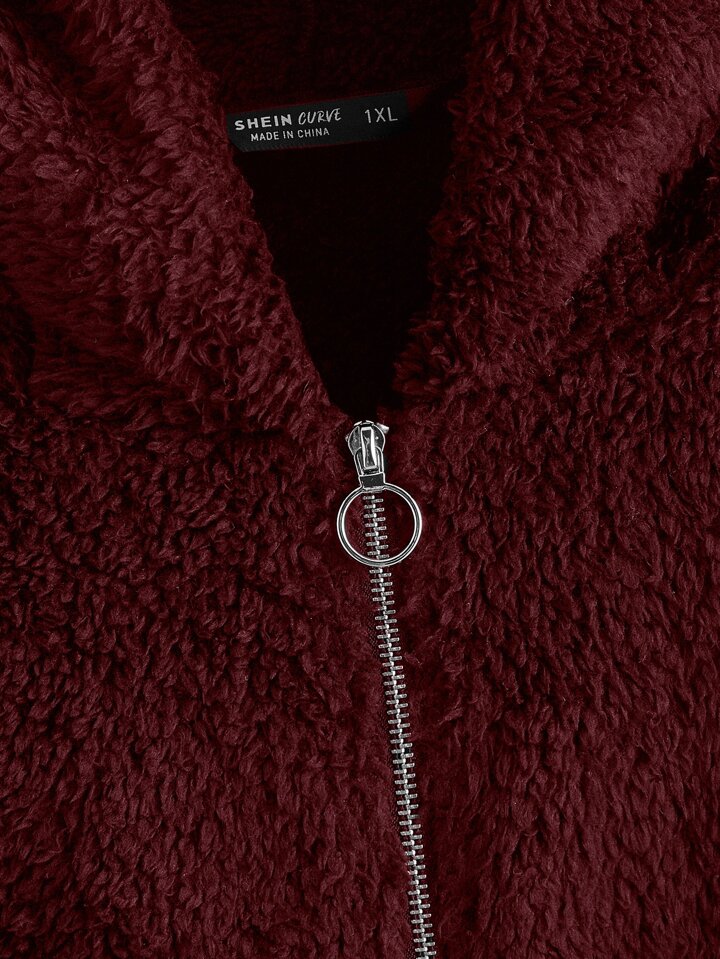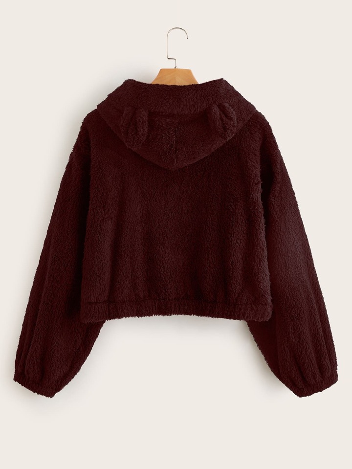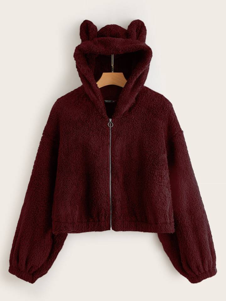 Teddy Jacke mit 3D Ohren Dekor und Kapuze