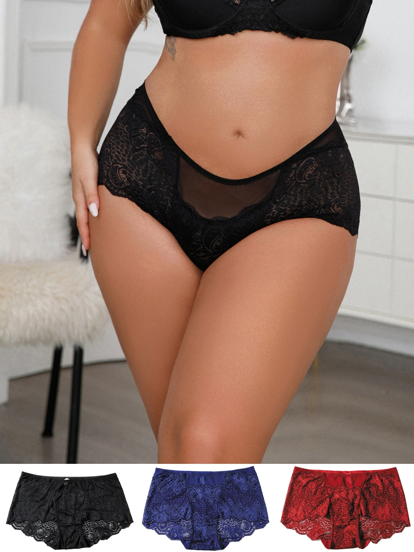 3 Packe Höschen mit Kontrast Spitzen