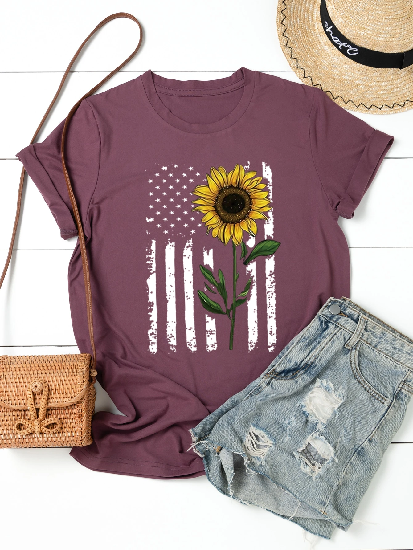 T-Shirt mit amerikanischer Flagge & Blume Muster