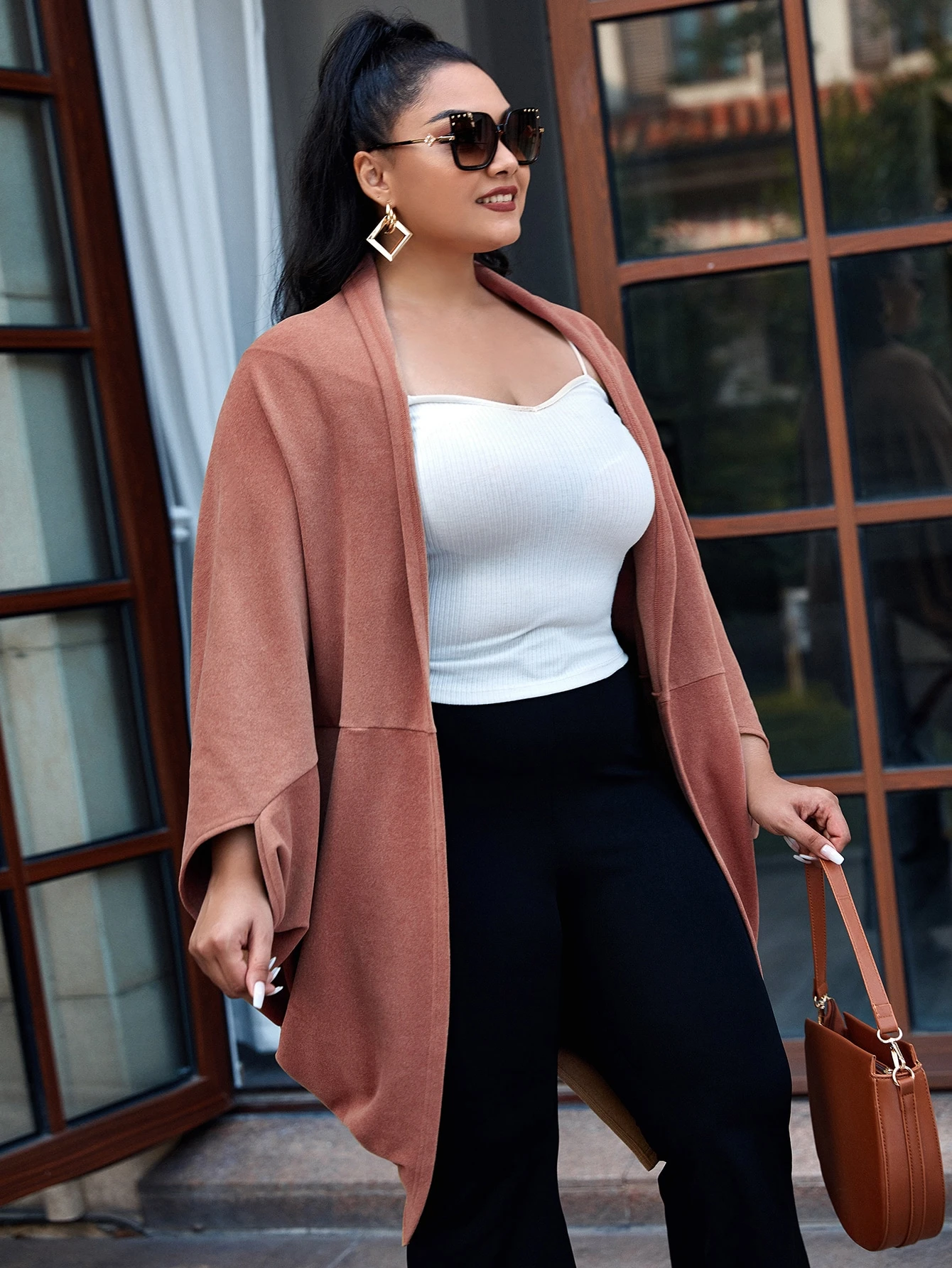 Mantel mit Fledermausärmeln und Schlitz hinten