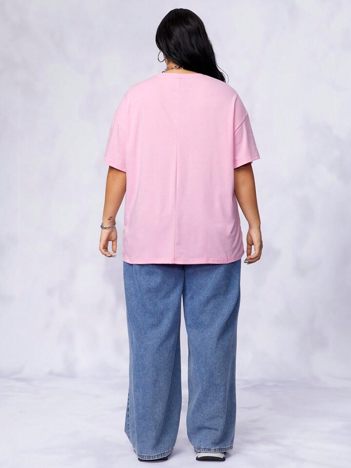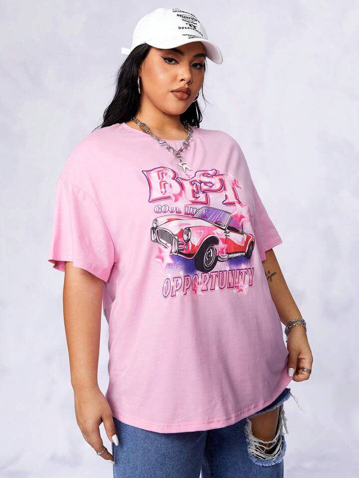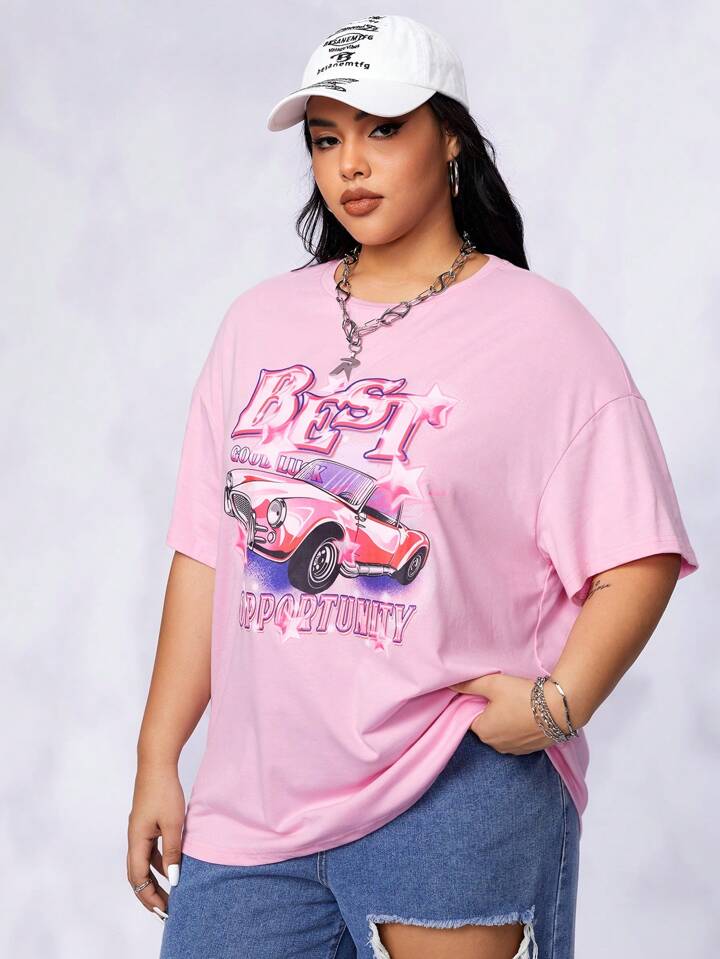 Bikercore Drop Shoulder T-Shirt mit Dopamin Dressing Auto & Buchstabe Grafik
