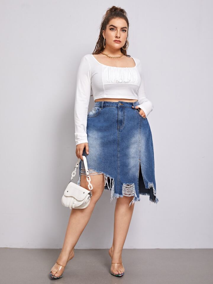 Jeansrock mit Bleach Wäsche und Riss