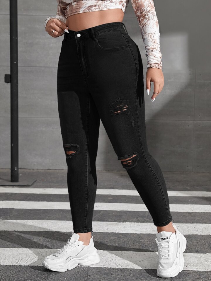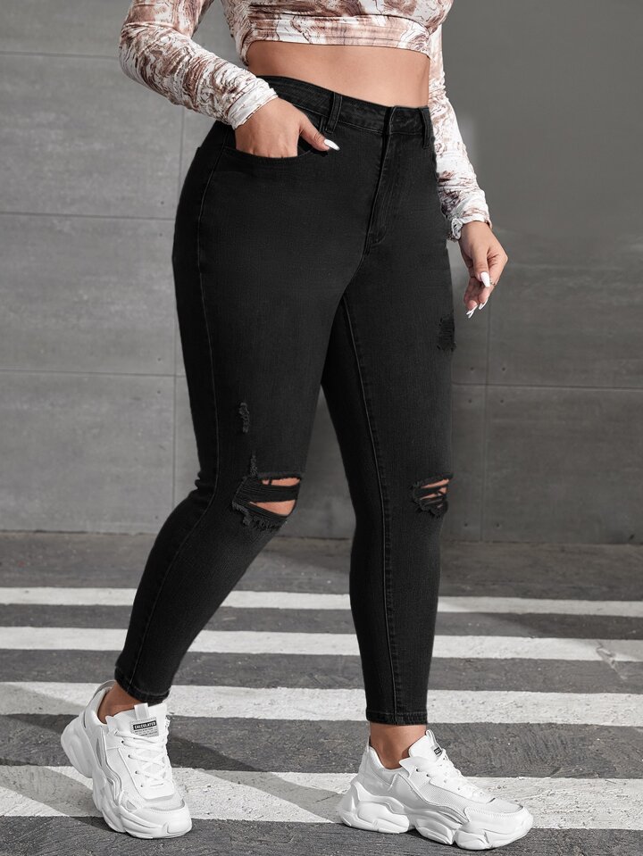 Schmale Jeans mit Bleichen Waschung, Riss