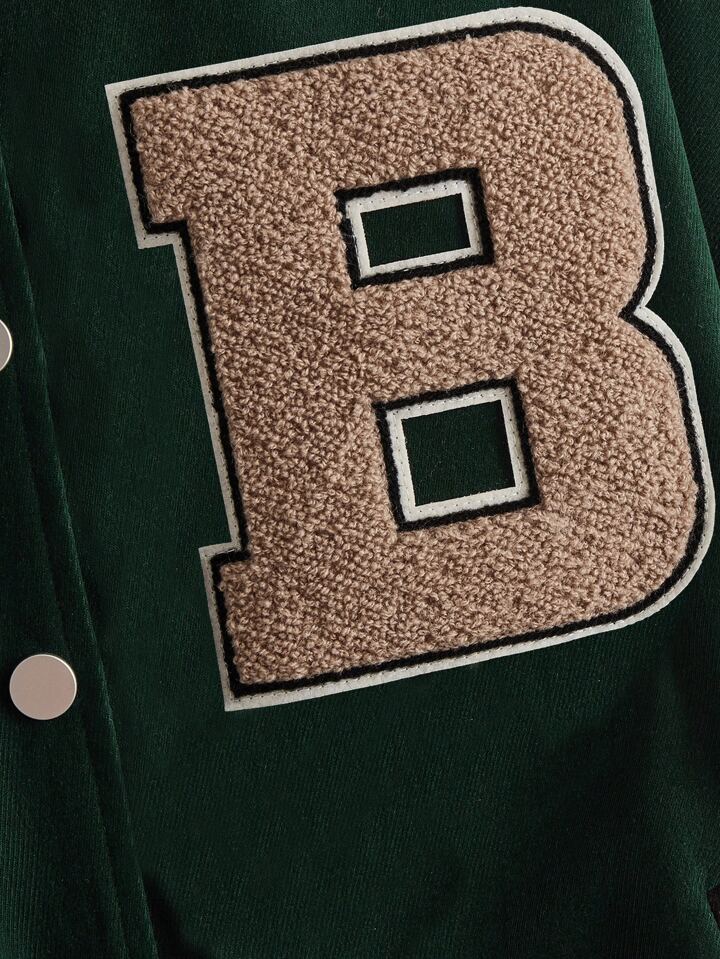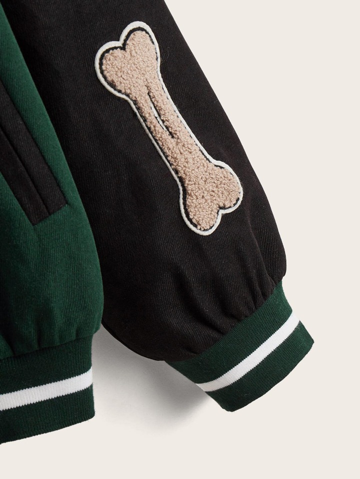 College Jacke mit Knochen und Buchstabe Flicken Detail, Drop Shoulder Farbblock