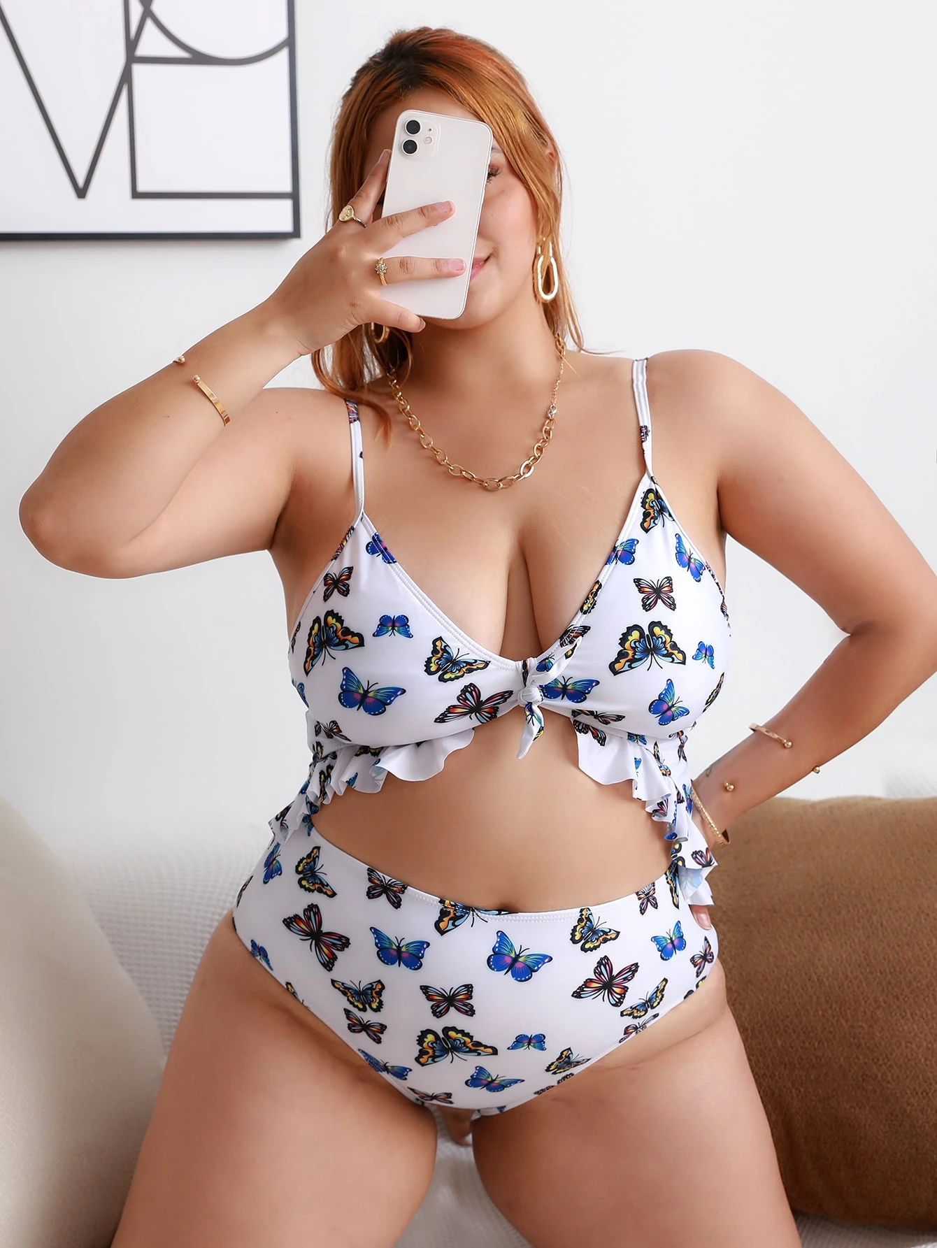 Badeanzug mit Schmetterling Muster und Cut-Out