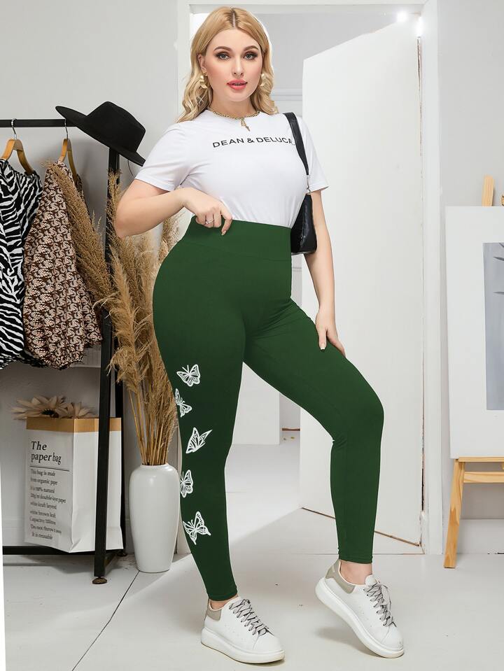 Leggings mit Schmetterling Muster, breitem Taillenband