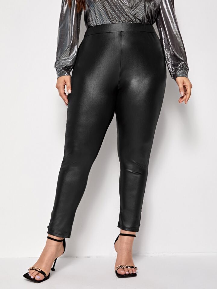 PU Leder Leggings mit Knöpfen