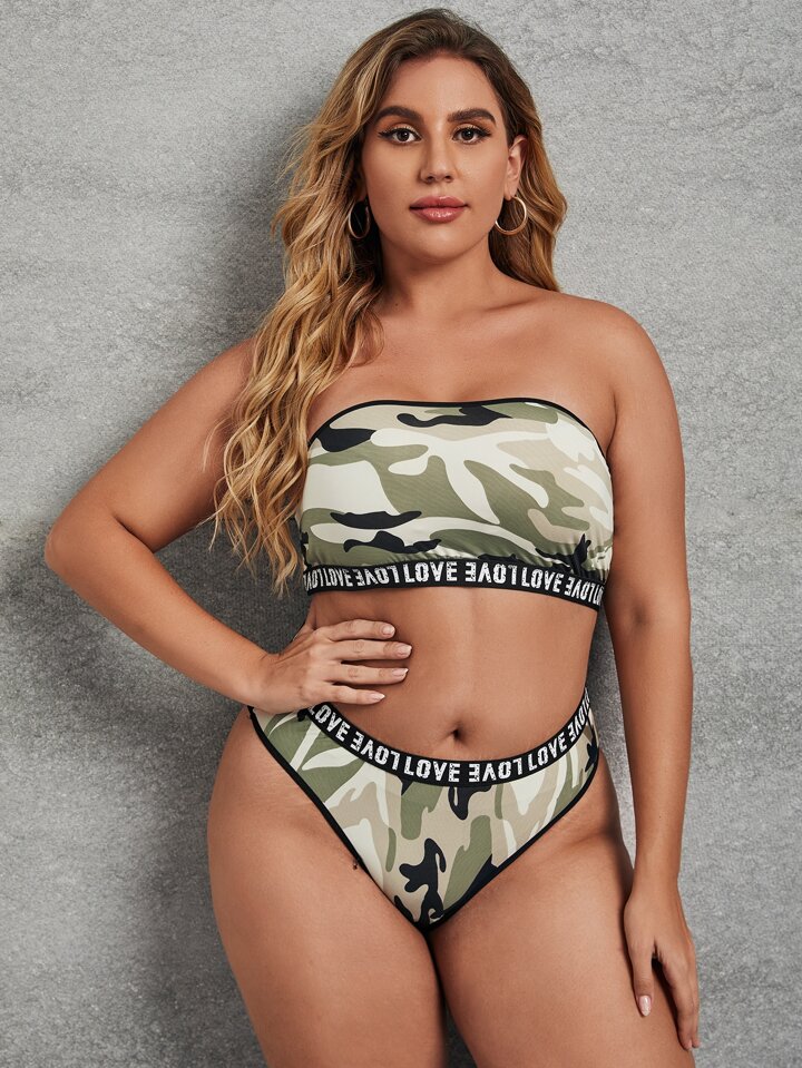Dessous Set mit Camo Muster, Buchstabenband