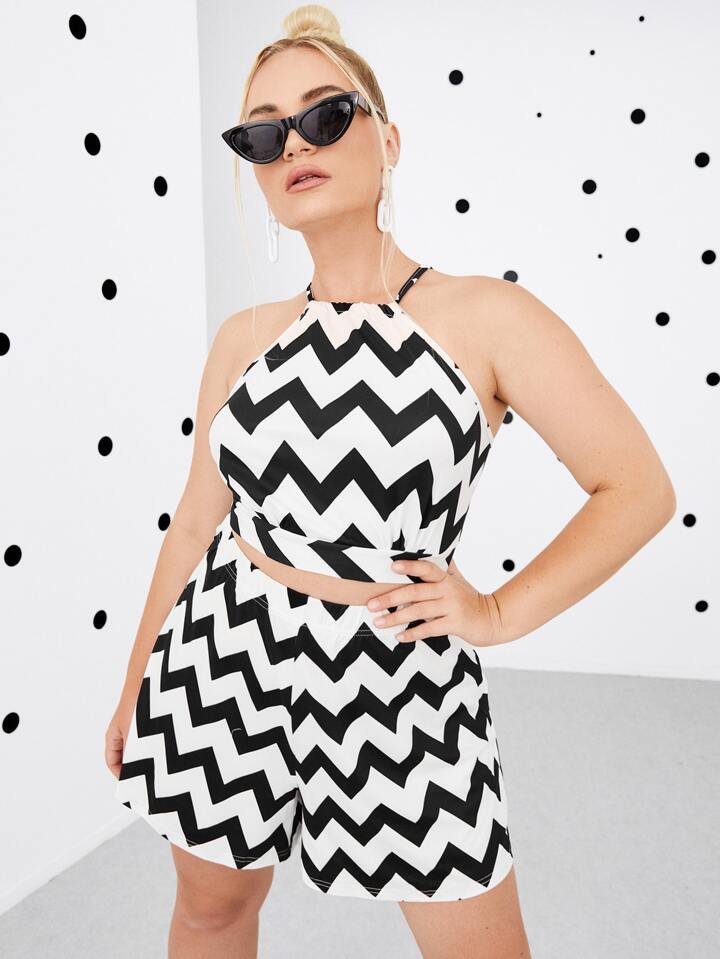Cami Top mit Chevron Muster, Kreuzgurt und Shorts
