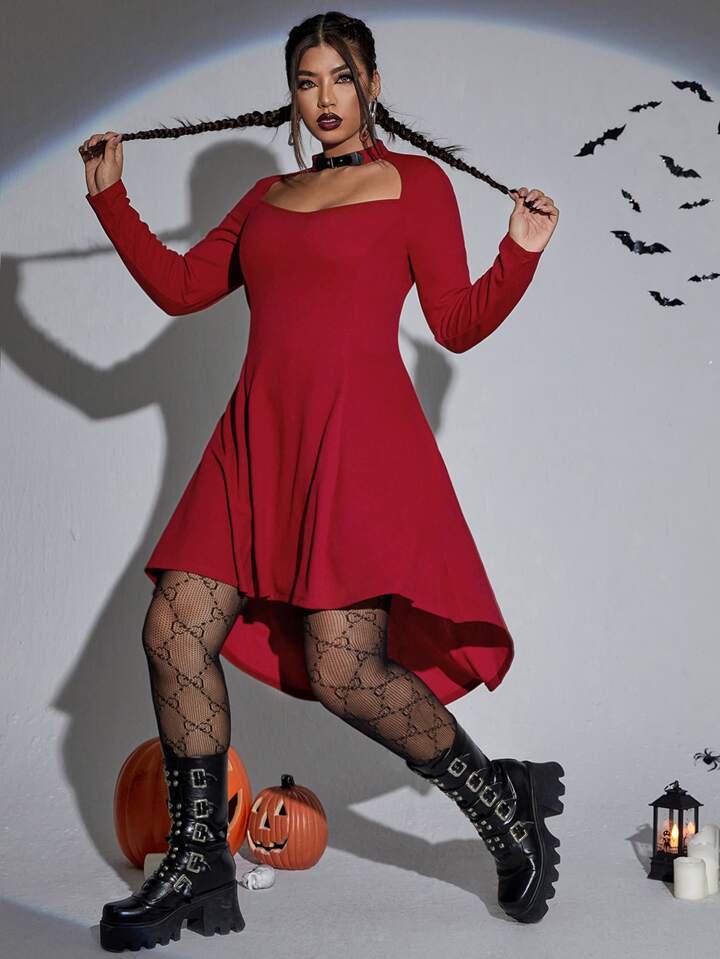 Kleid mit Choker Kragen, Stufensaum ohne Korsage