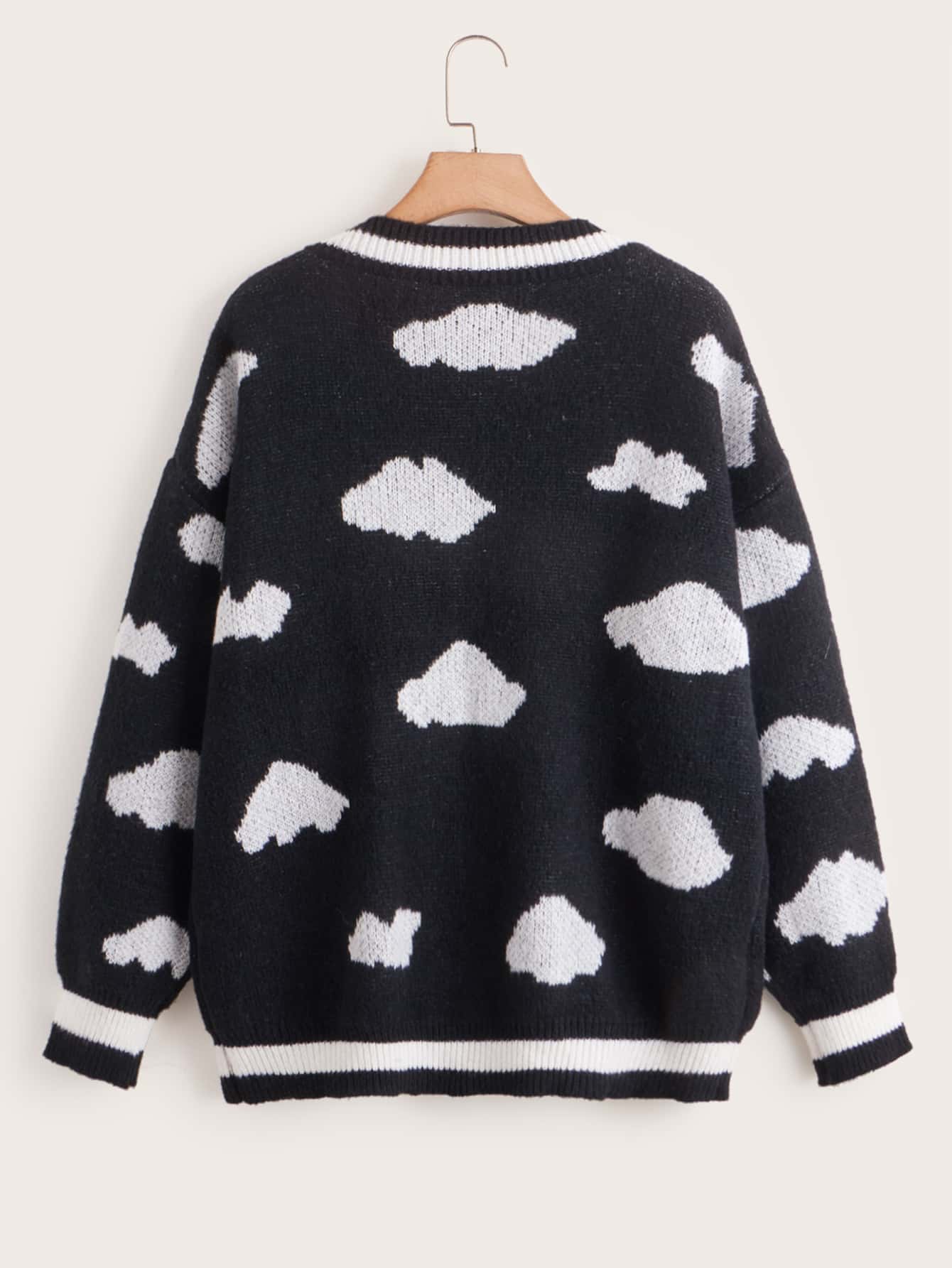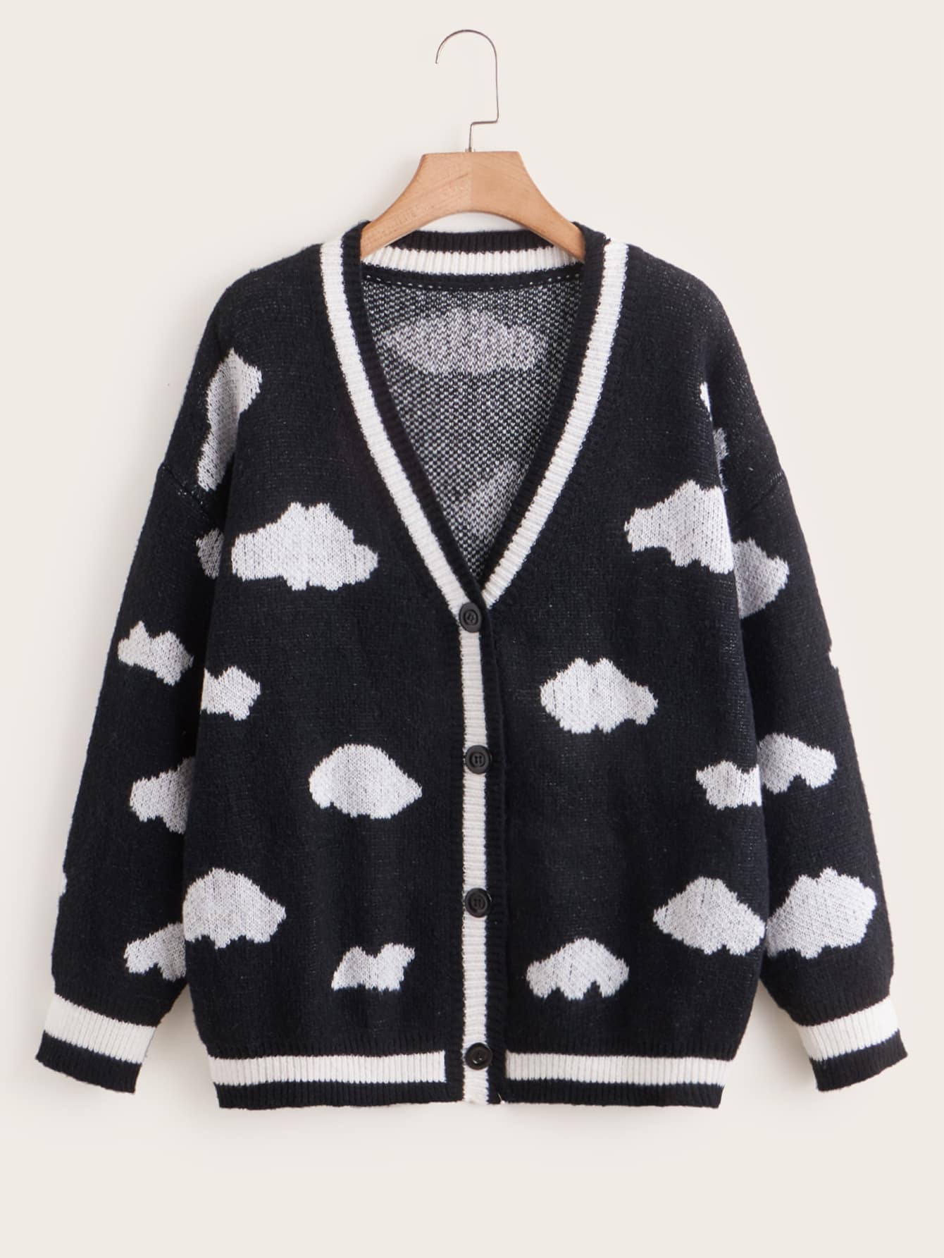 Cardigan mit Wolke Muster, sehr tief angesetzter Schulterpartie, Knopf vorne