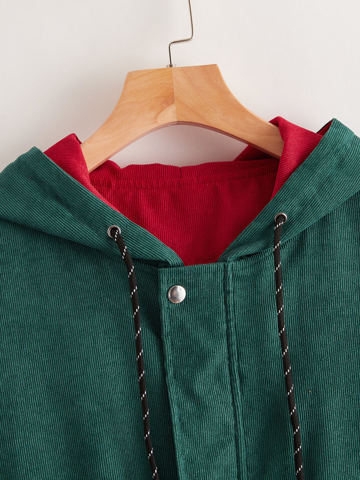 Kord Jacke mit Farbblock, Kordelzug und Kapuze