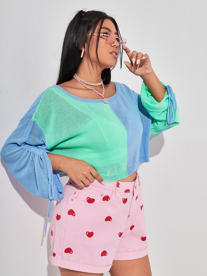 Crop Pullover mit Farbblock und Tunnelzug auf Ärmeln