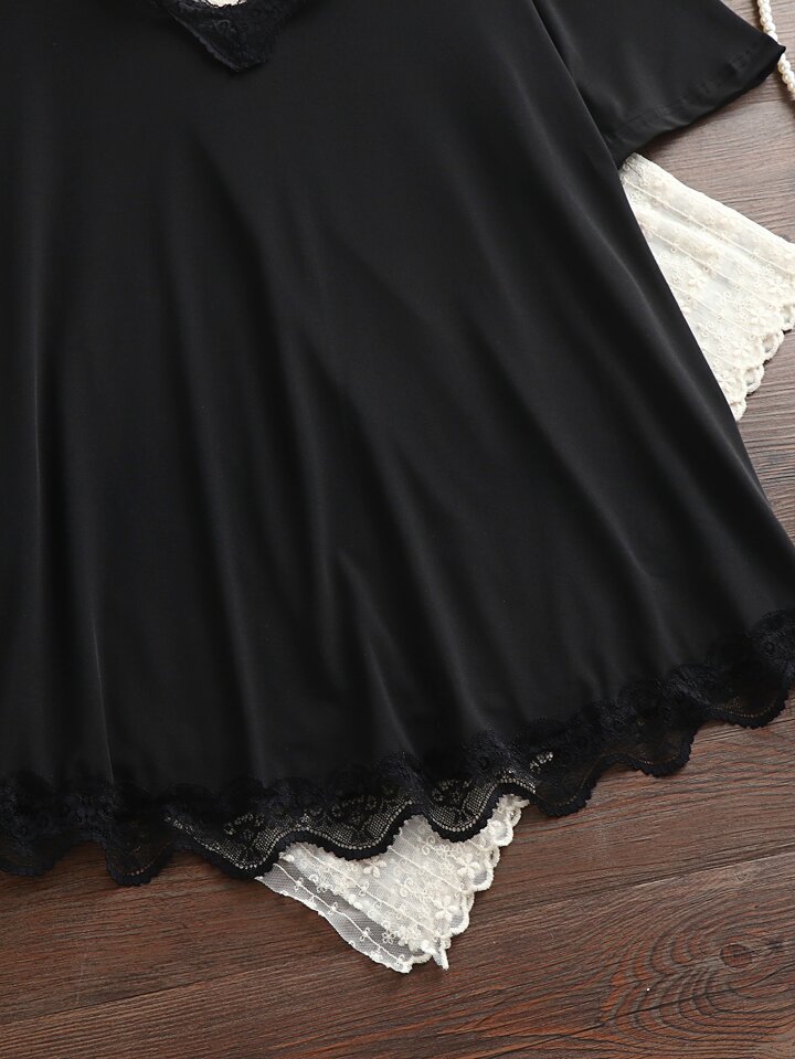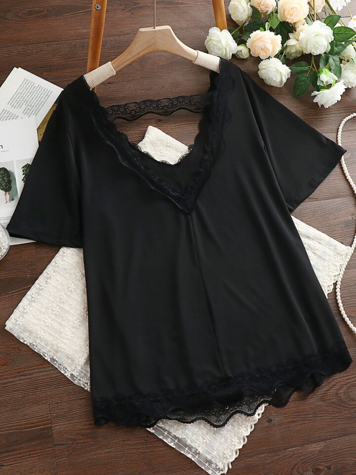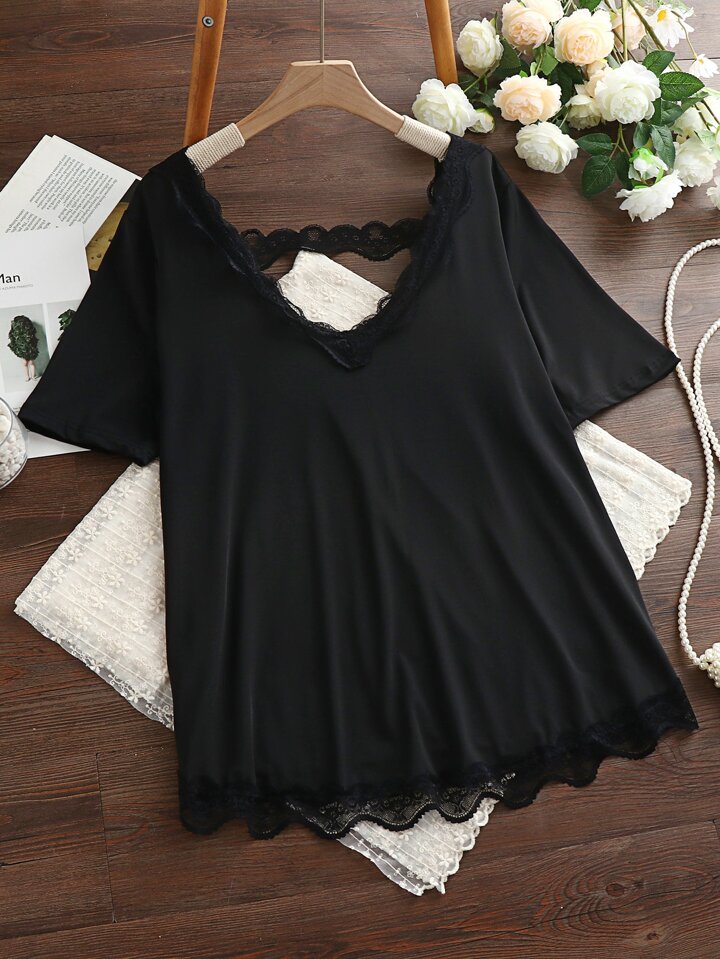 T-Shirt mit Kontrast-Spitzen und Cut-Out hinten