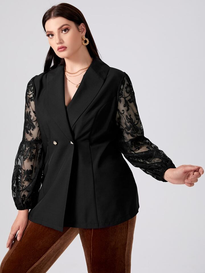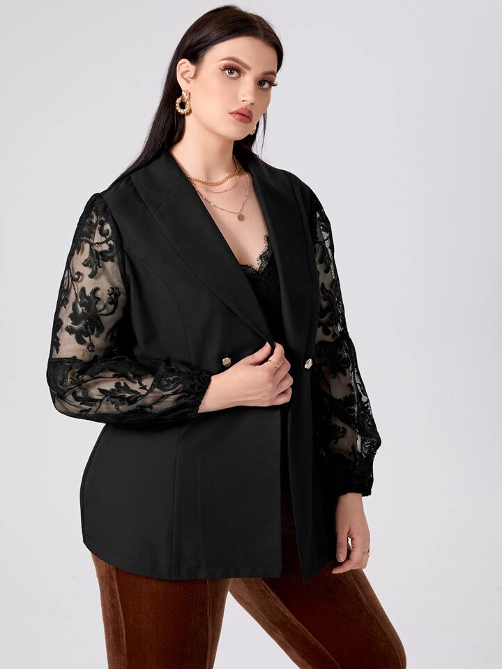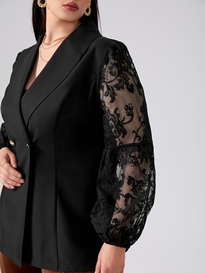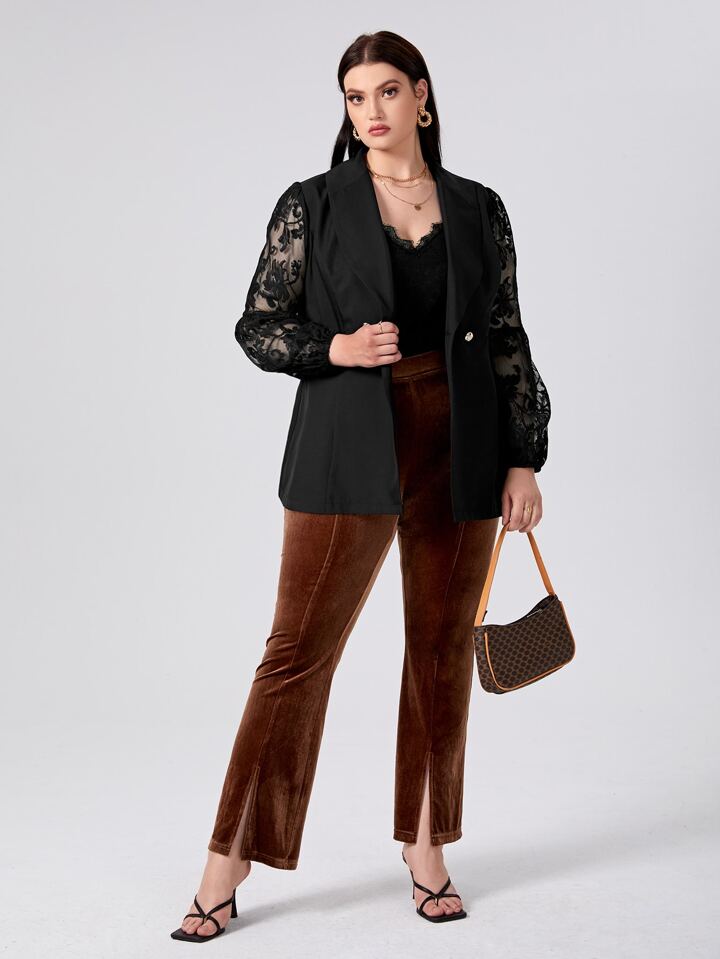 Blazer mit Kontrast Spitzen auf Ärmeln