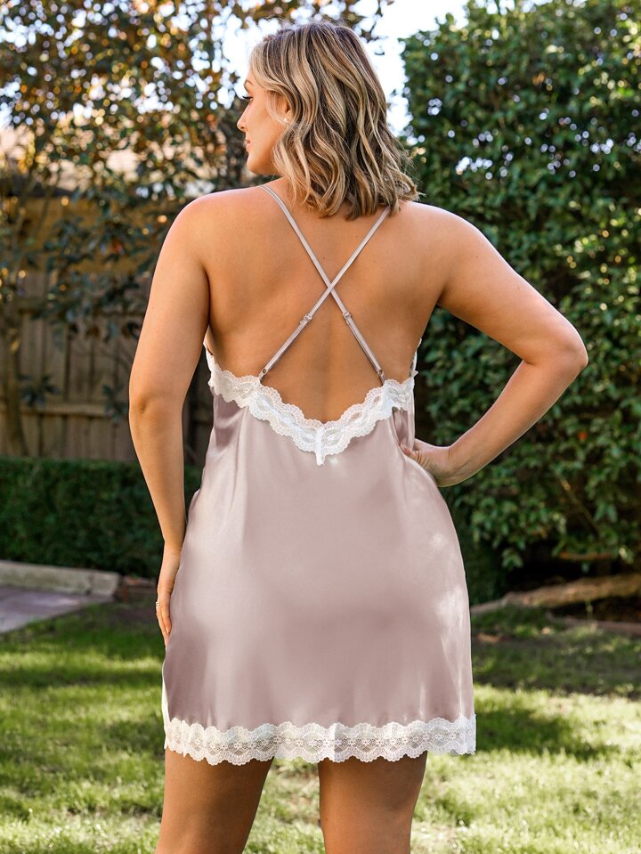 Cami Nachtkleid mit Kontrast Spitzen, Schlitz, Satin