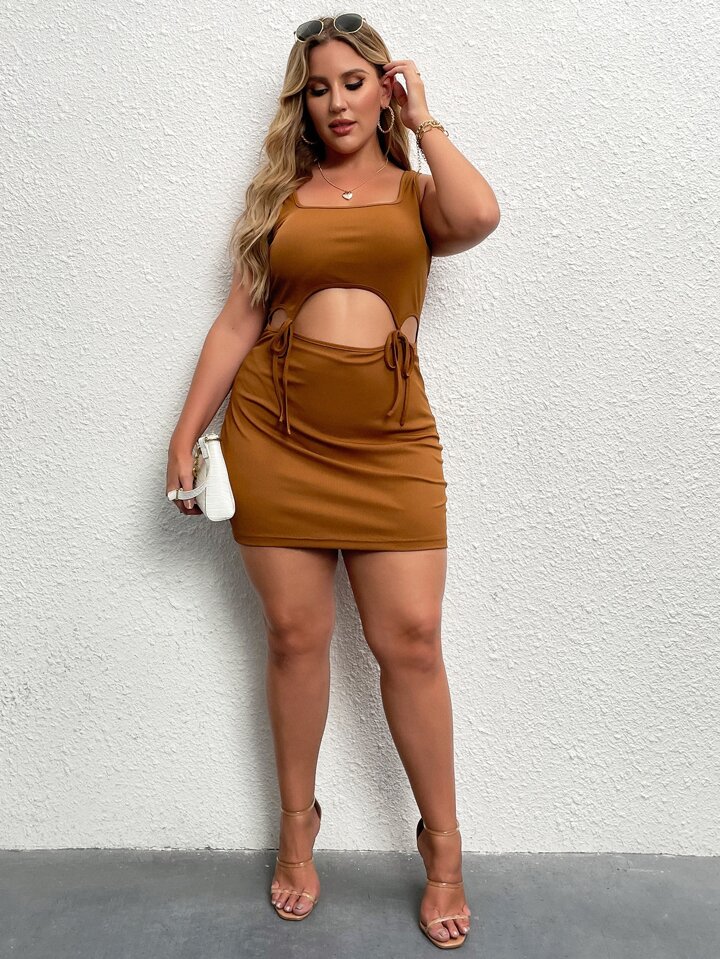 Cut Outs Knoten Einfarbig Sexy Kleider Große Größen