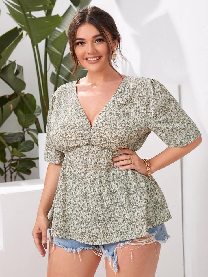 Bluse mit Blümchen Muster und Rüschenbesatz