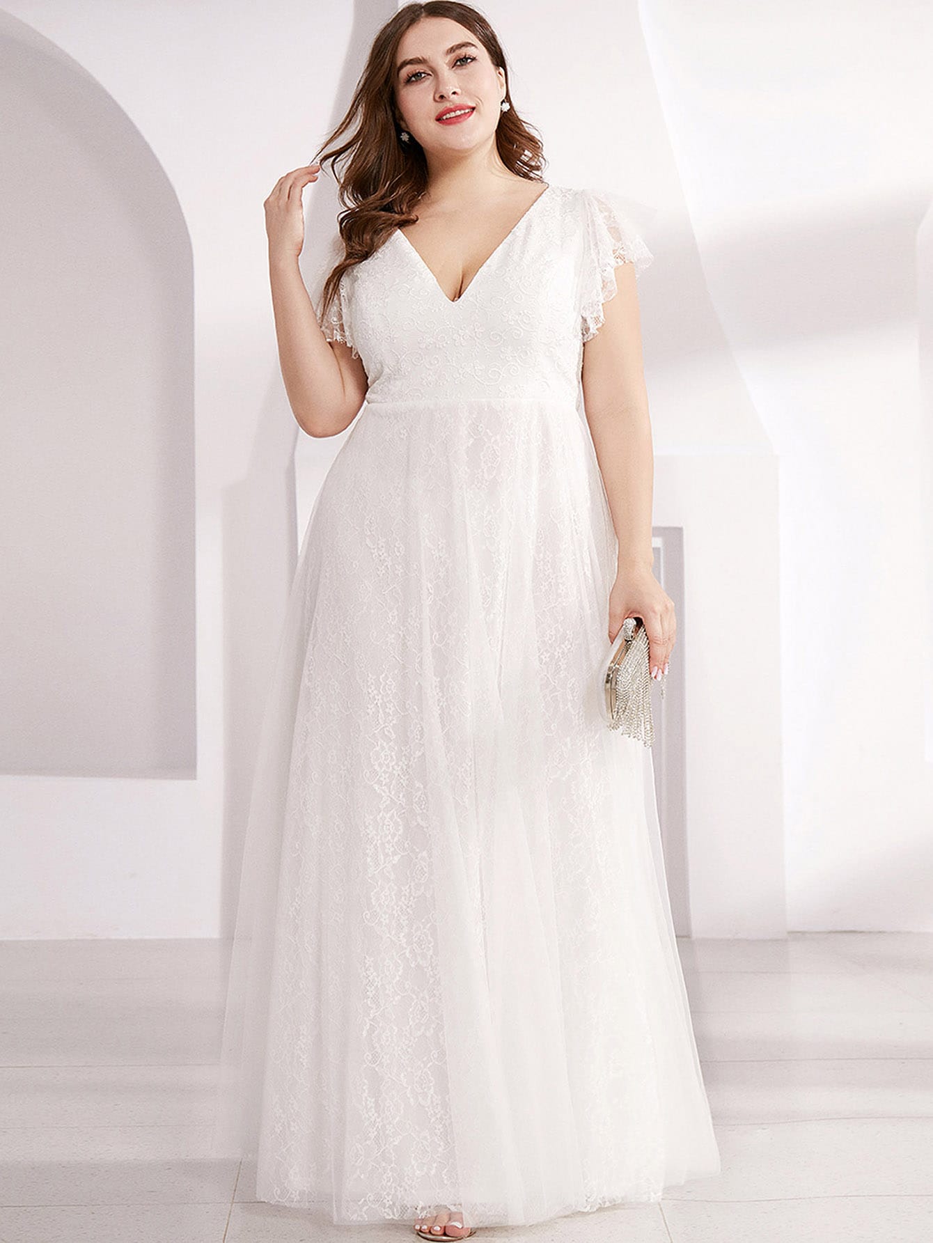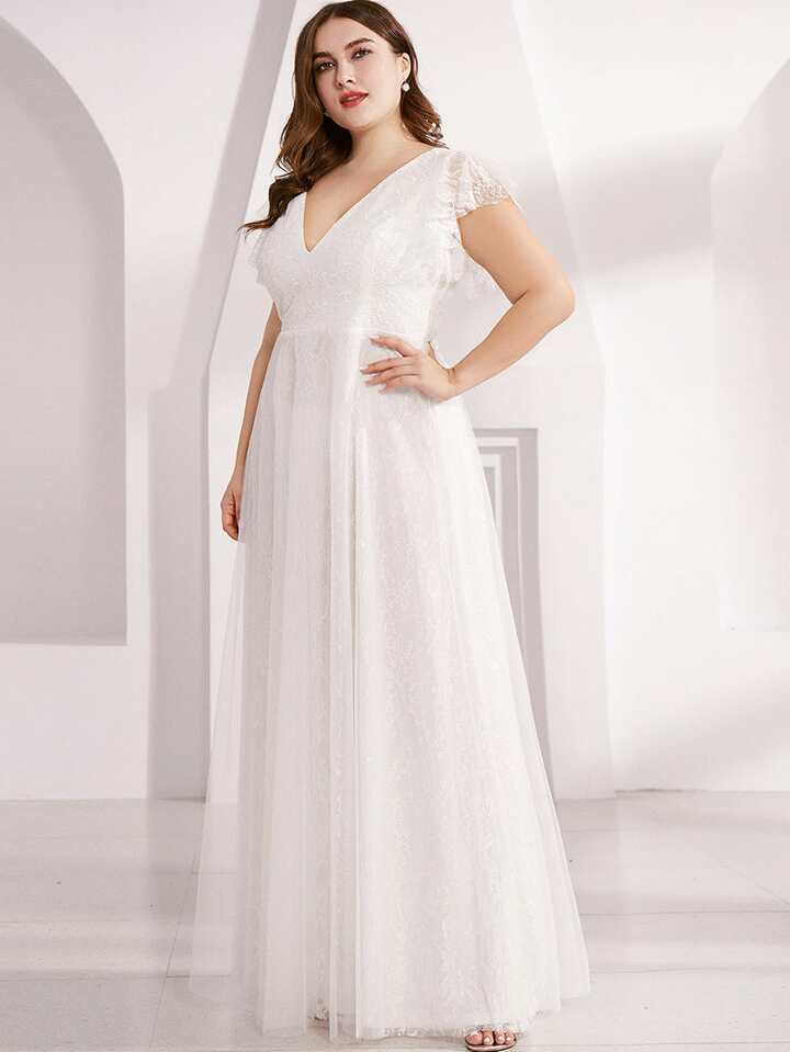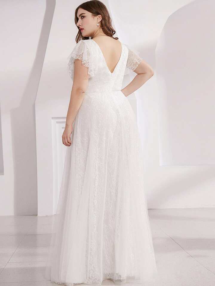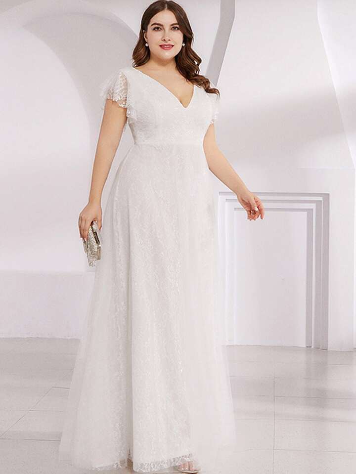 Ballkleid mit V Kragen und Schmetterlingärmeln