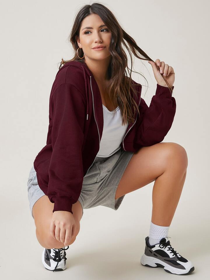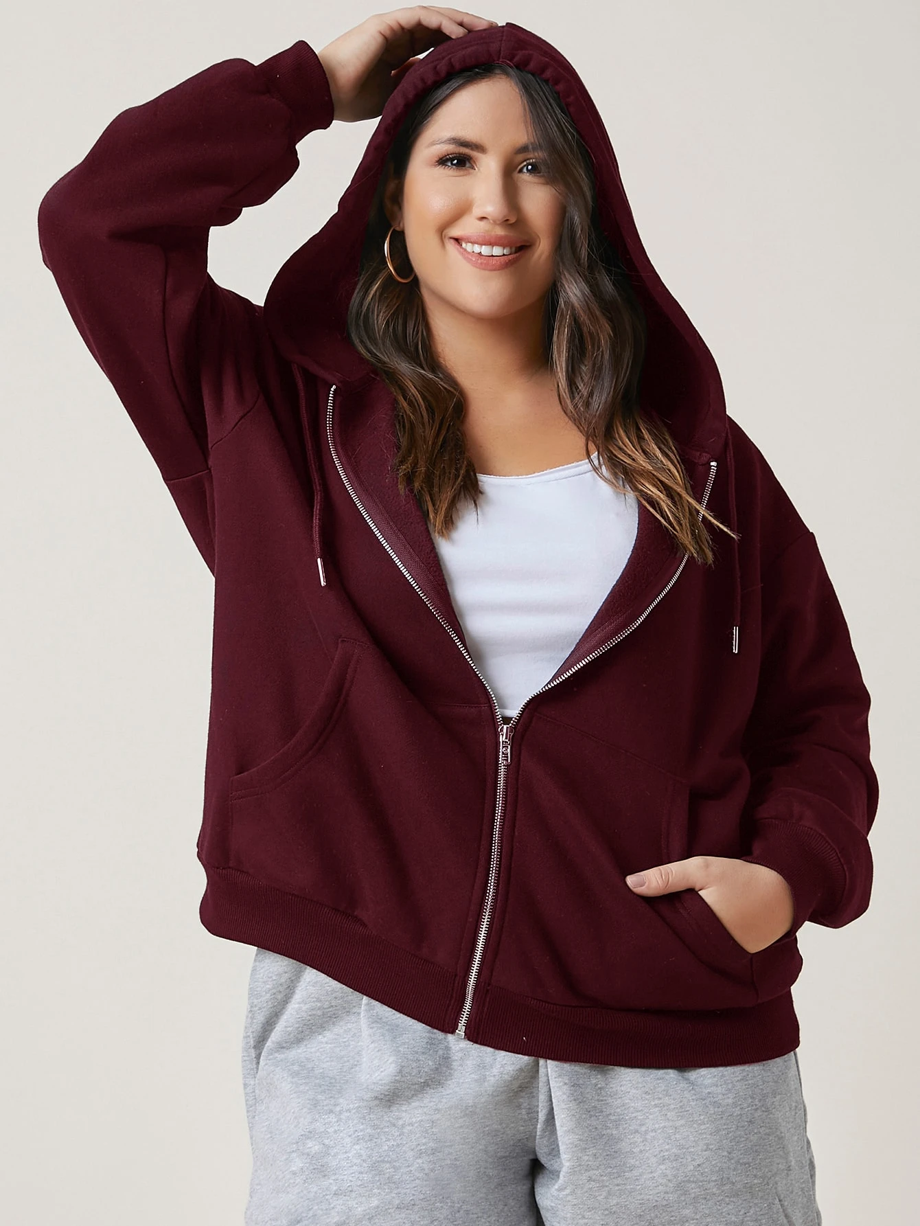 Ziehbändchen Taschen Reißverschluss Einfarbig Lässig Sweatshirts Große Größen