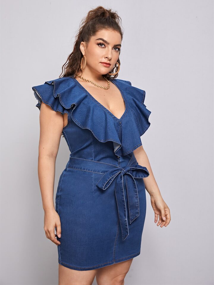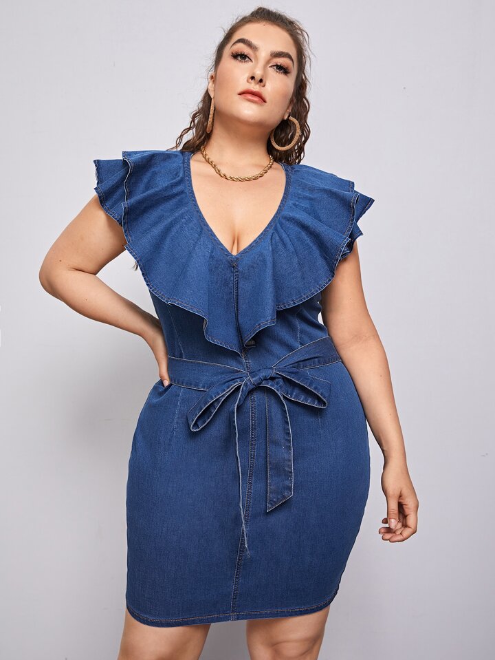Jeanskleid mit Rüschen und Gürtel