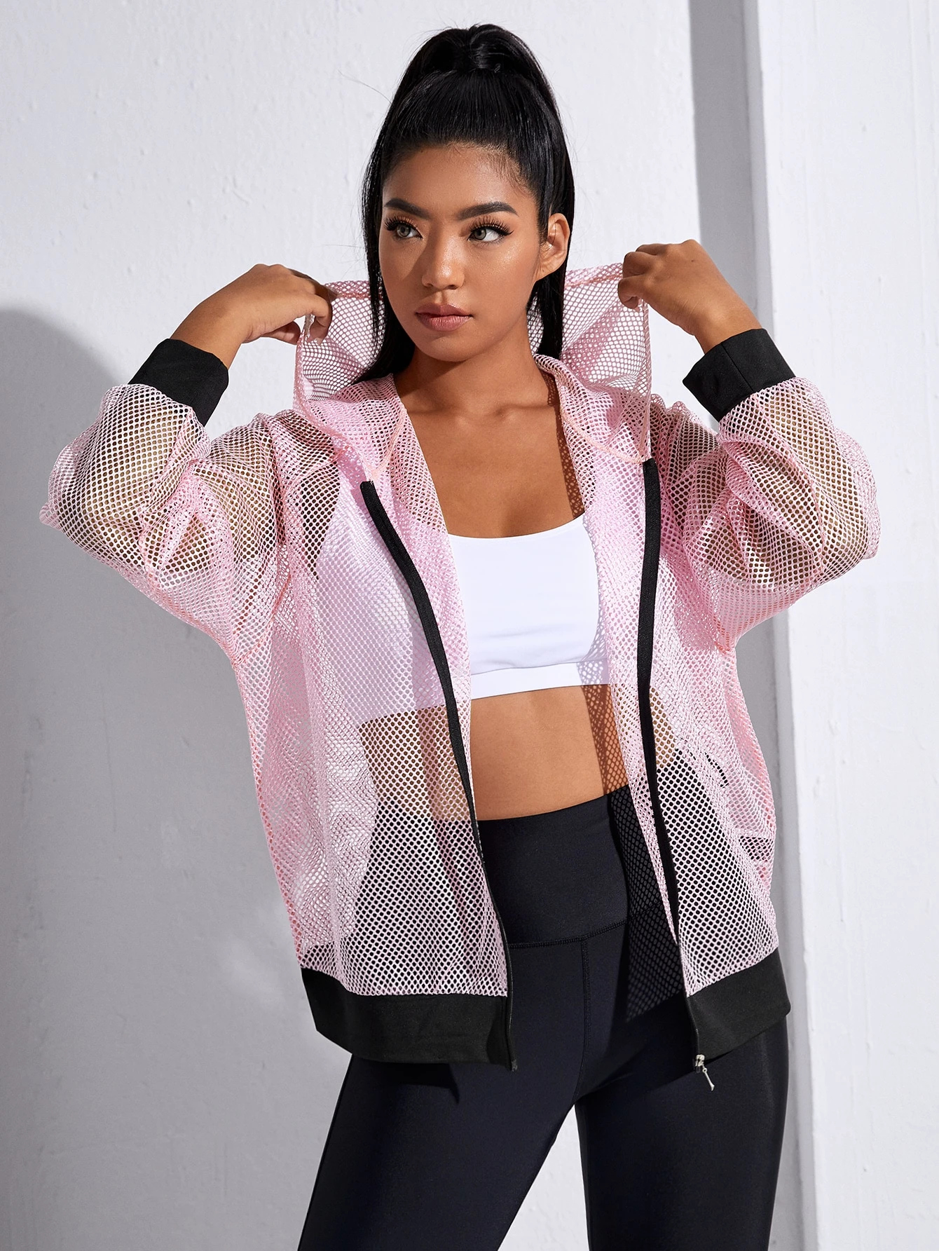Fischnetz Sportjacke mit Reißverschluss und Kapuze