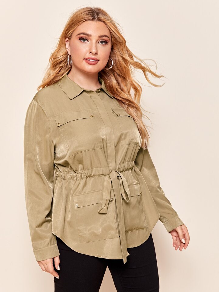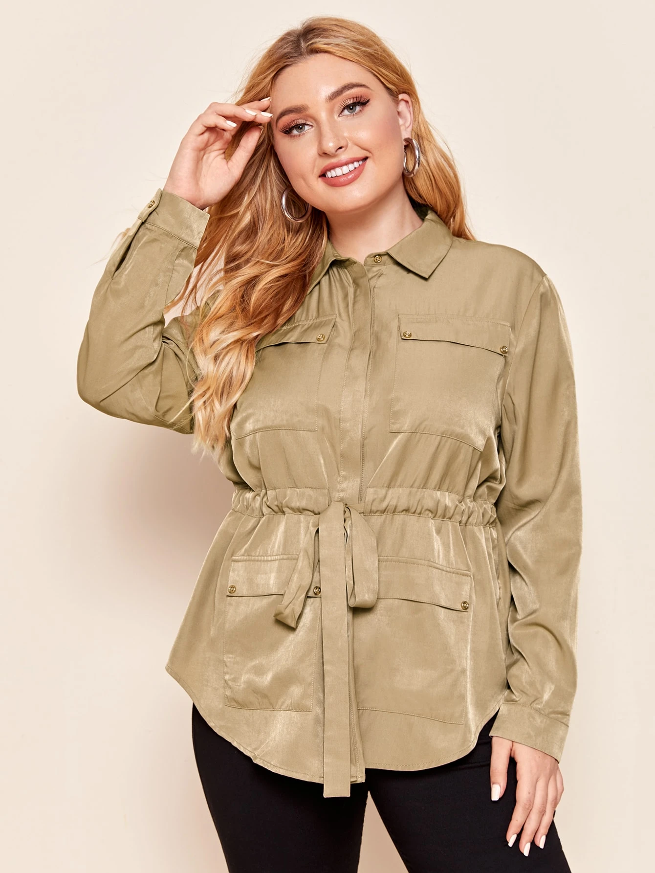 Mantel mit Taschen Klappe vorn, Kordelzug auf Taille und gebogenem Saum