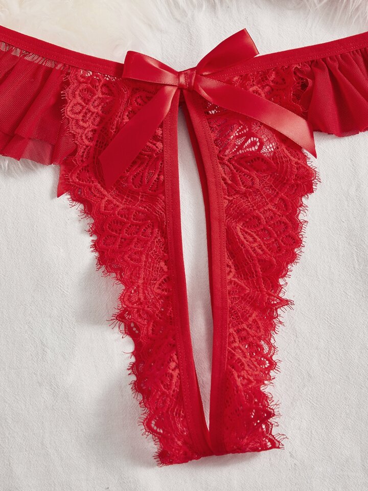 Dessous Set mit Blumenspitze, Cut-Out, Bügel