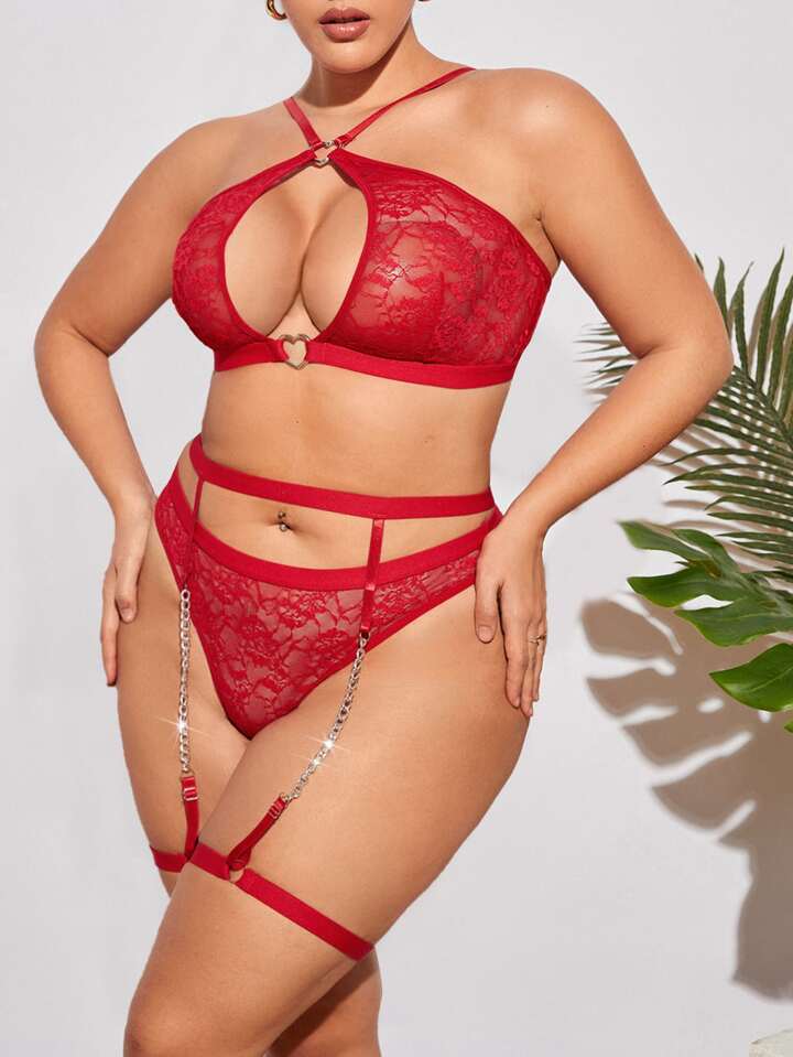 Dessous Set mit Blumenspitze, Ring Bindung, Strumpfband