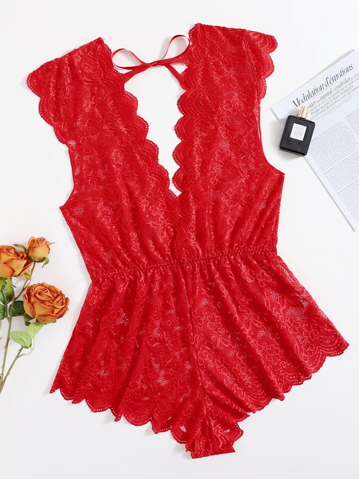 Teddy Body mit Blumenspitzen und Jakobmuschelbesatz