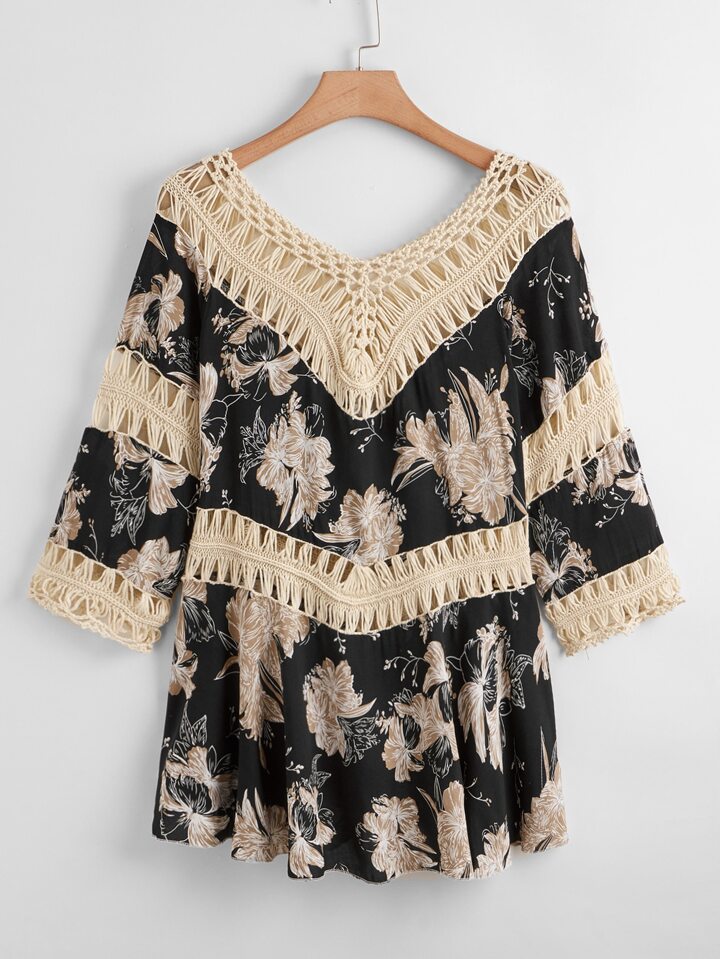 Cover-Up mit Blume Muster, Kontrast Häkelarbeit