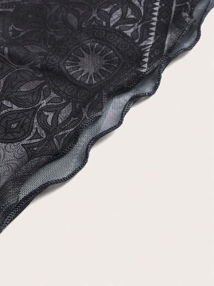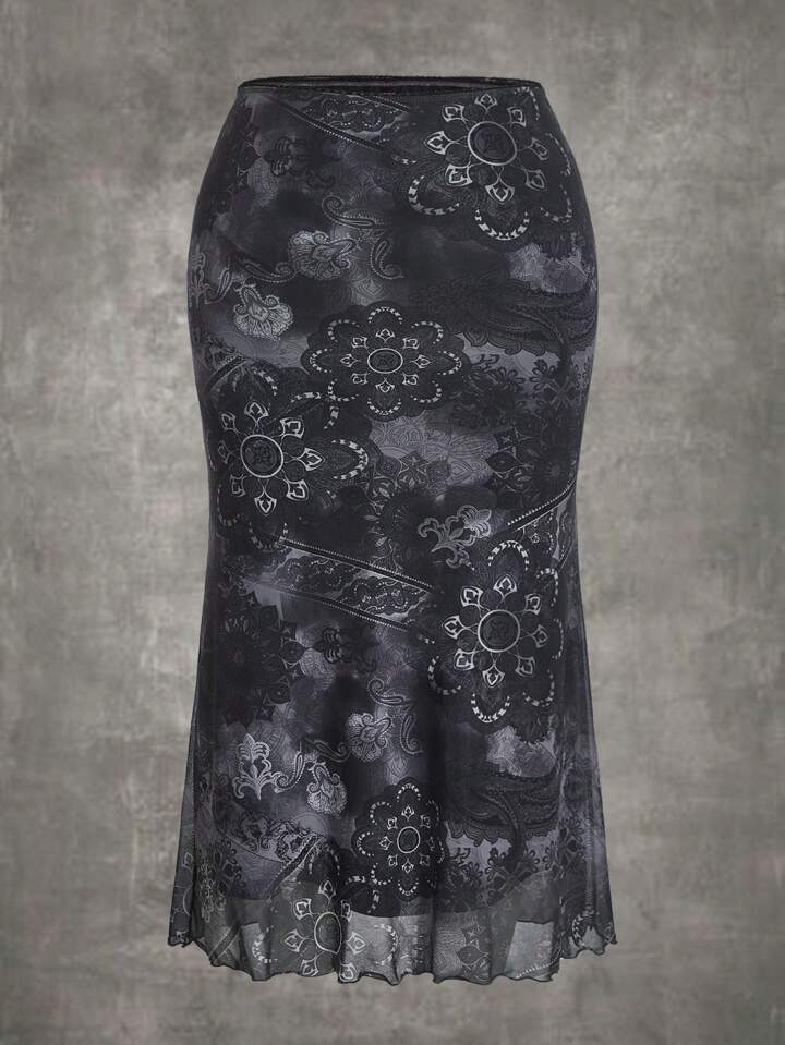Rock mit Blume Muster, Wellensaum, Mesh