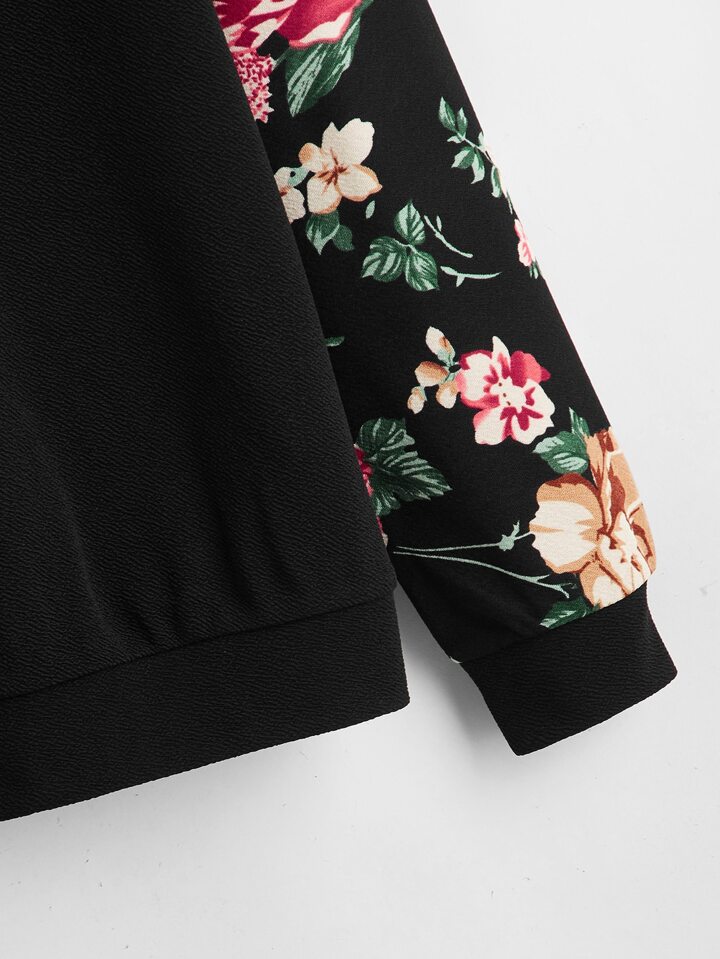 Pullover mit Blume Muster und Raglanärmeln