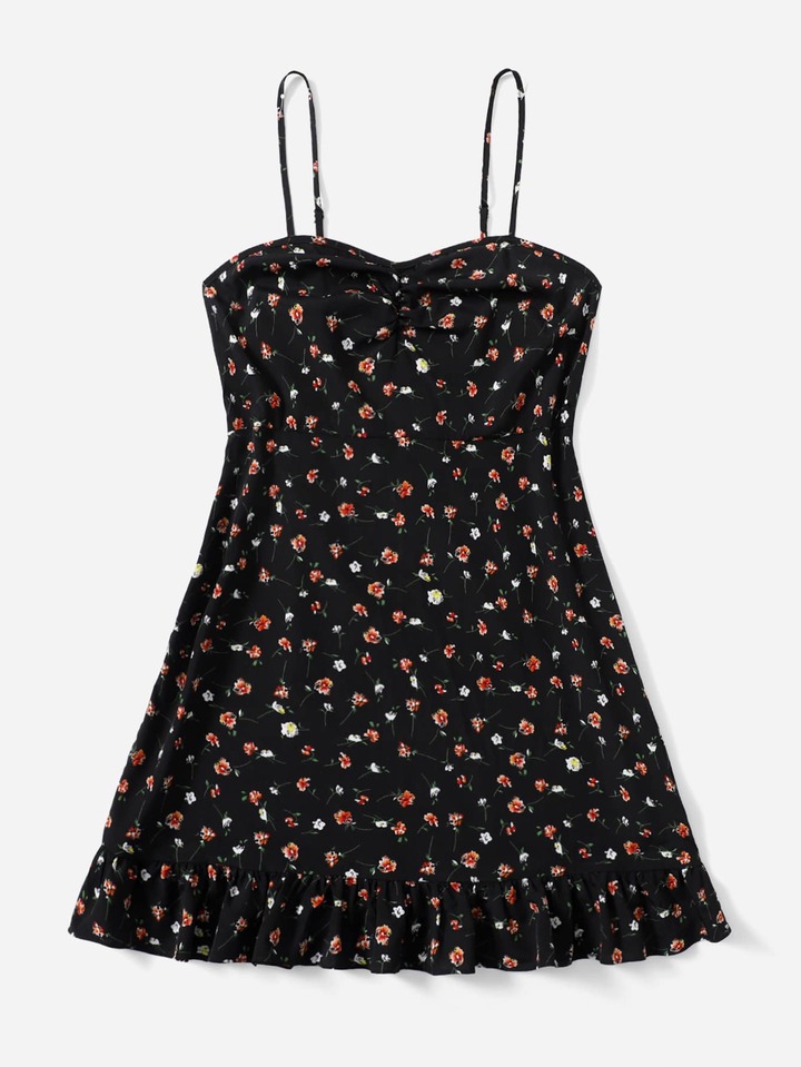 Cami Kleid mit Blume Muster, Rüschen, Rüschen