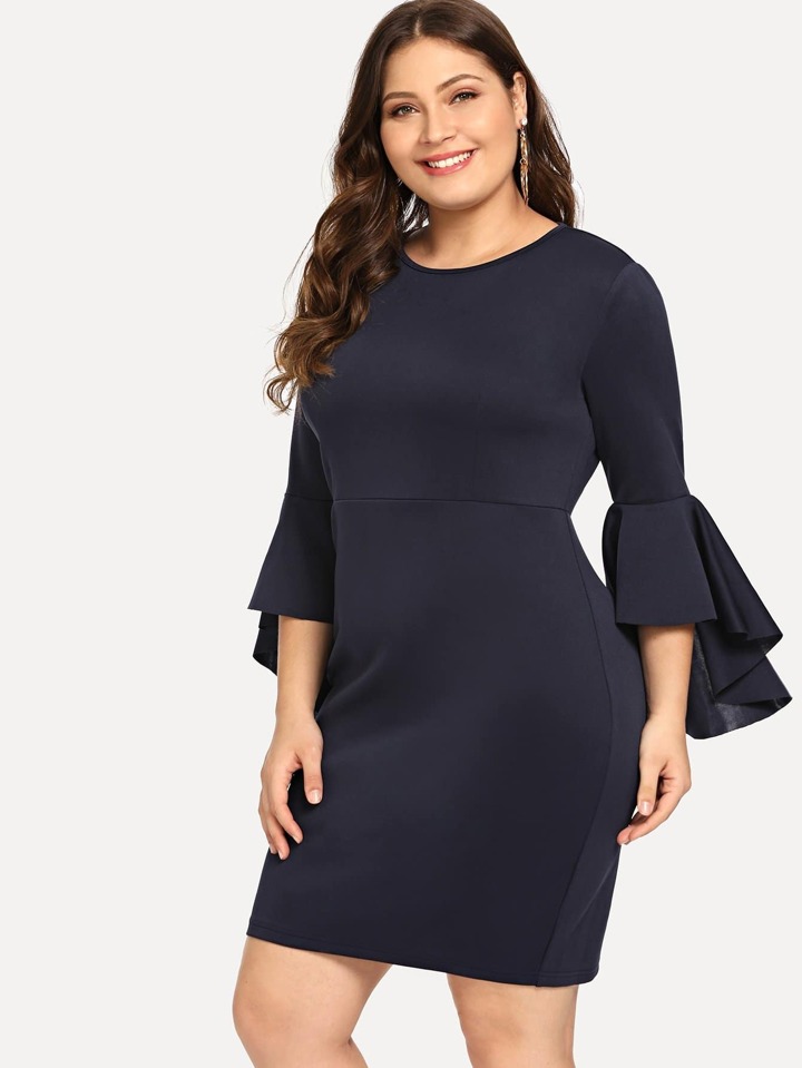 Übergroßes Kleid mit Schößchensaum auf den Ärmeln