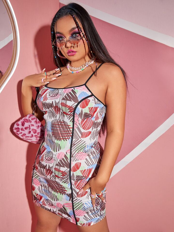 Kleid mit Graffiti Muster, Stich Besatz