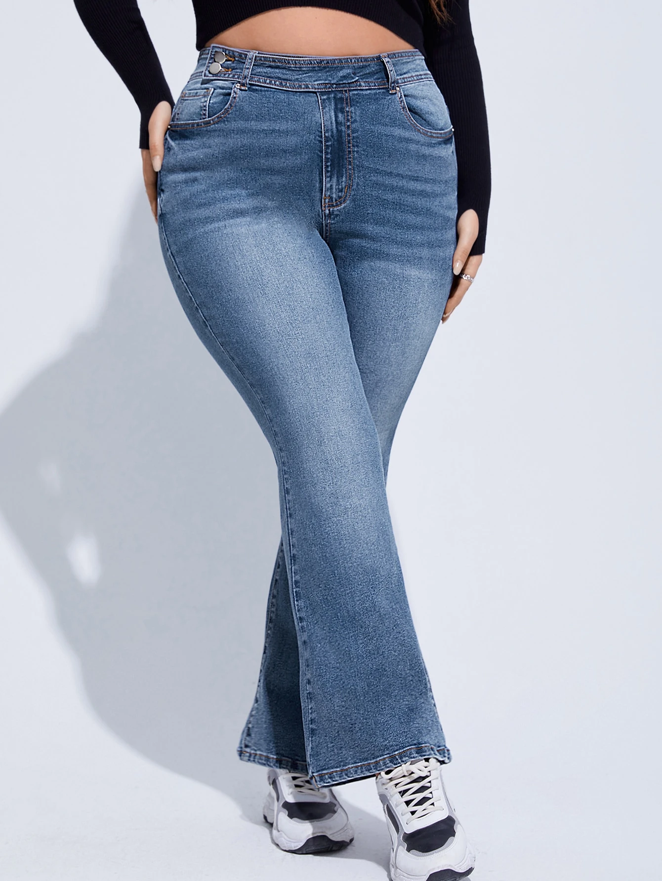 Schlaghose mit hoher Taille, Bleichen Waschung