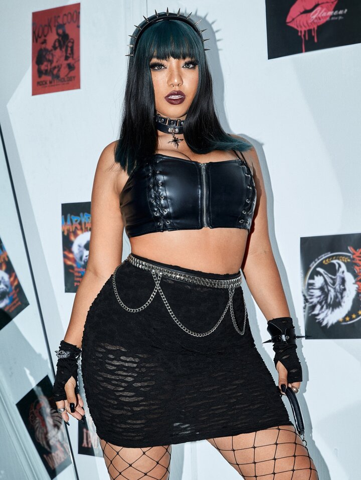 Figurbetonter Rock mit hoher Taille, Riss, ohne Gürtel