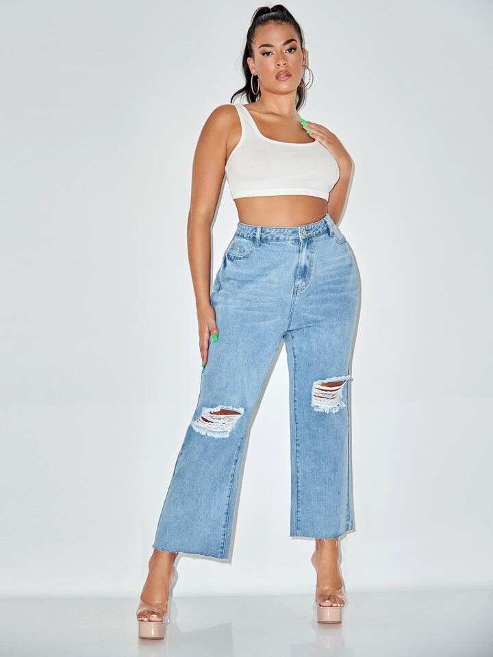 Jeans mit hoher Taille, Riss, breitem Beinschnitt