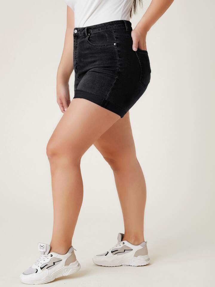 Denim Shorts mit hoher Taille, gerolltem Saum