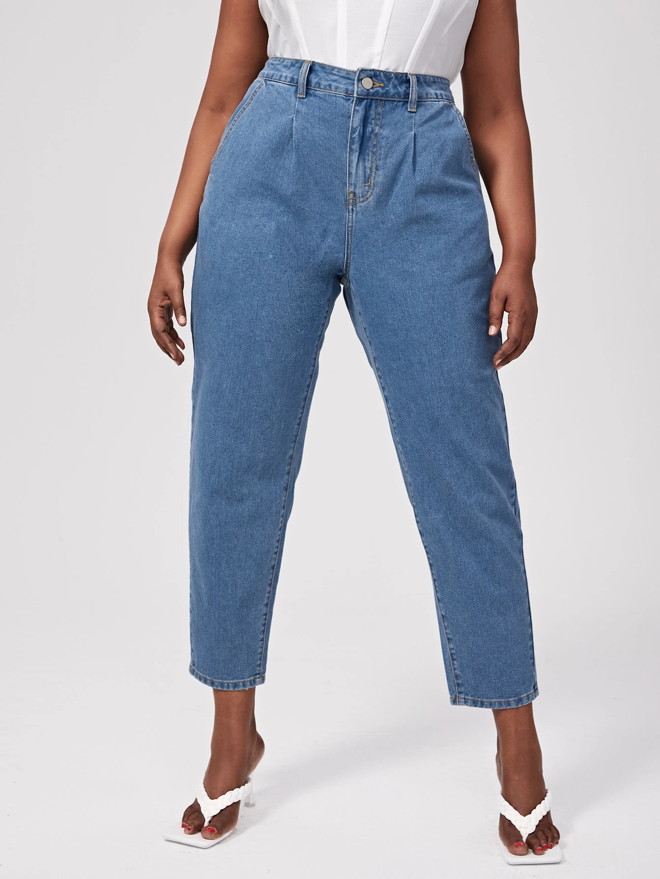 Crop Mom Jeans mit hoher Taille