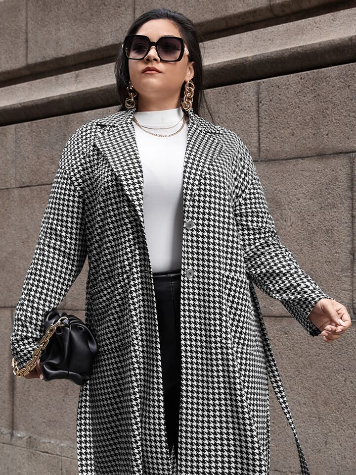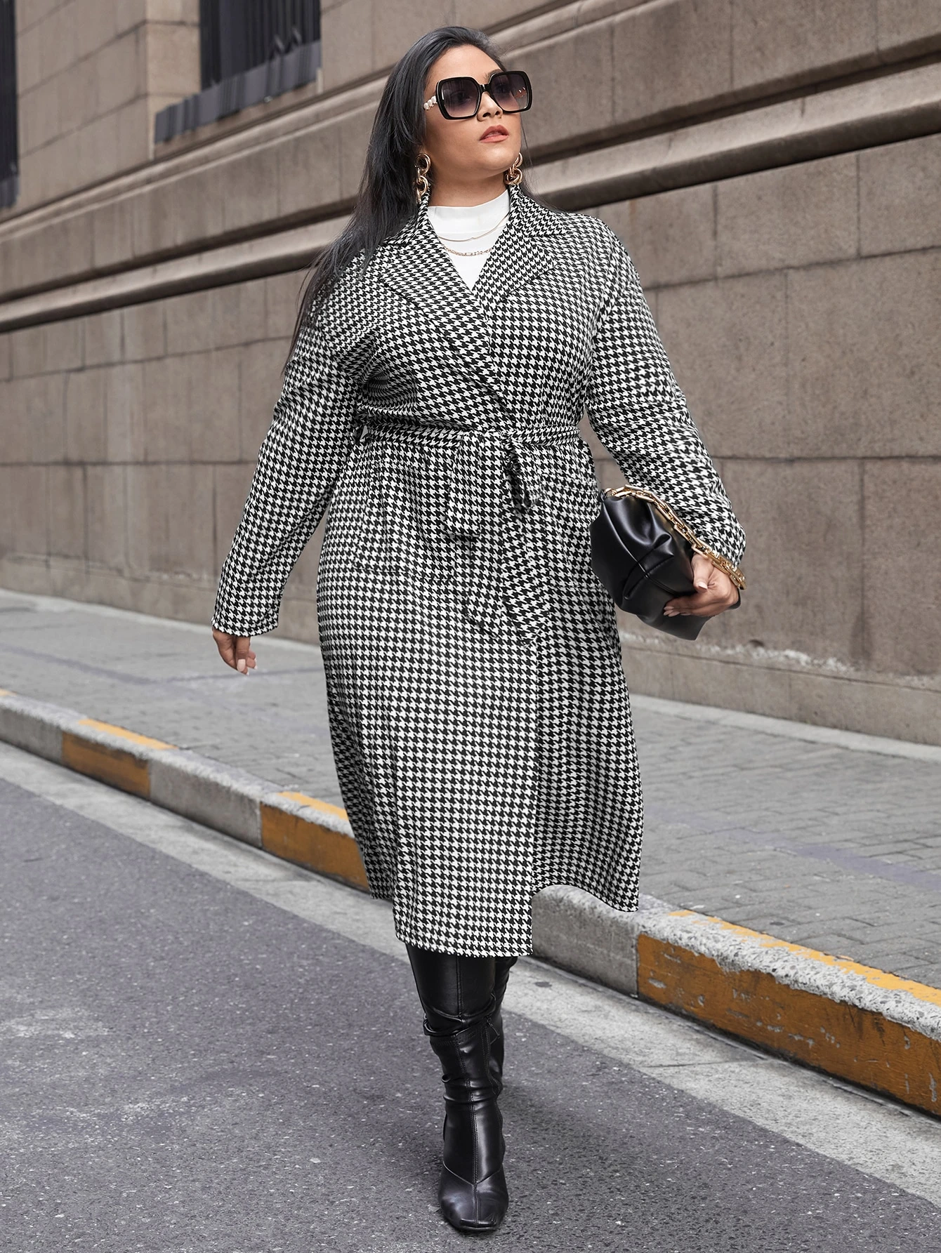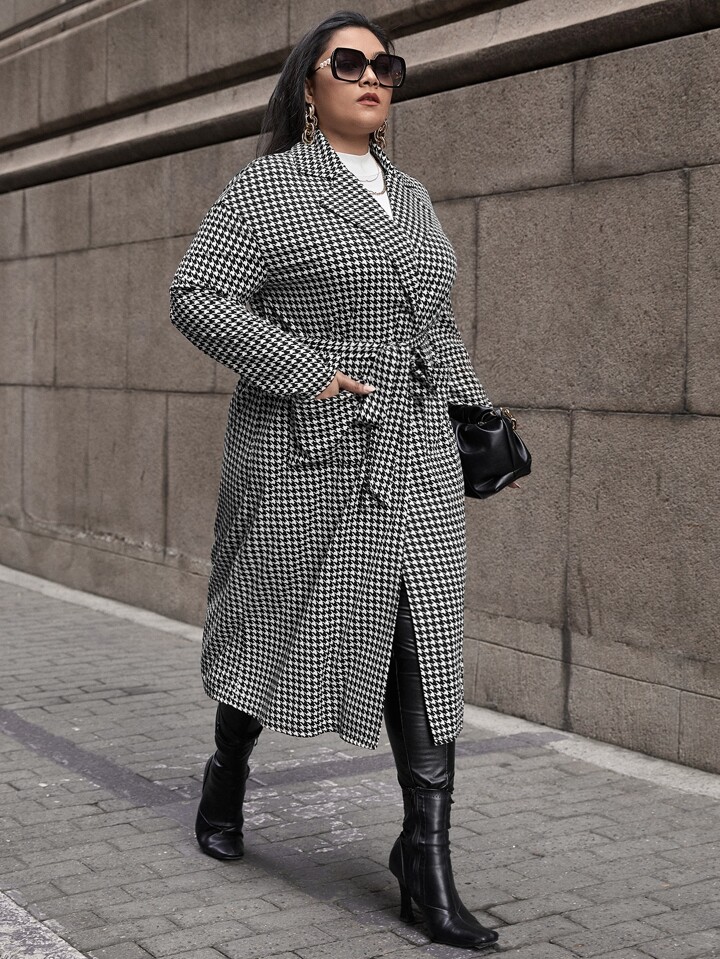 Mantel mit Hahnentritt Muster, Reverskragen und Gürtel