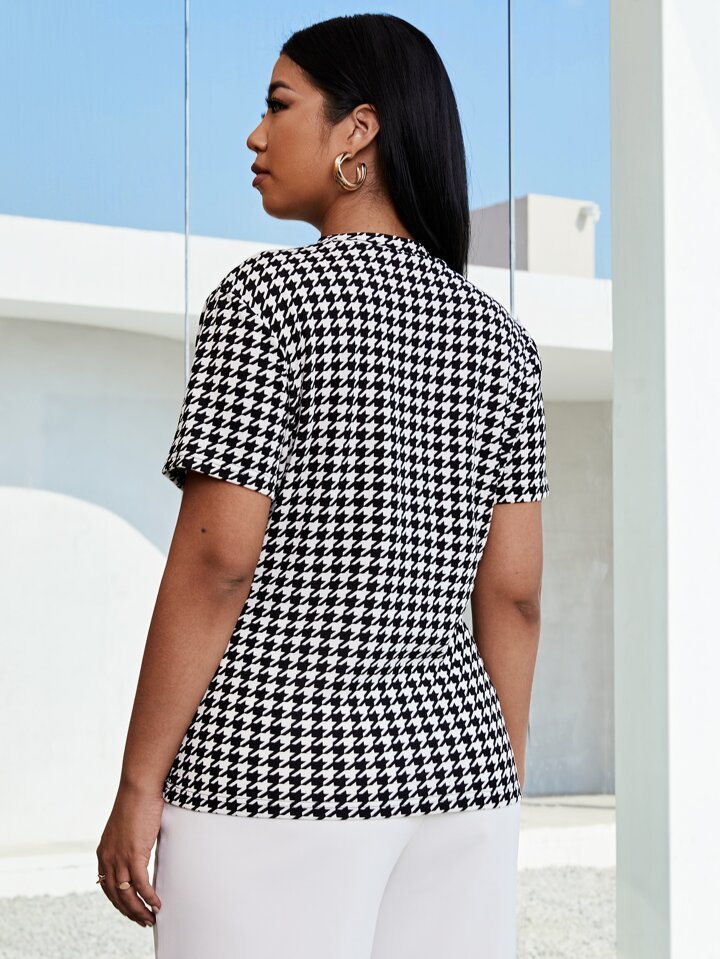 T-Shirt mit Hahnentritt Muster und rundem Kragen