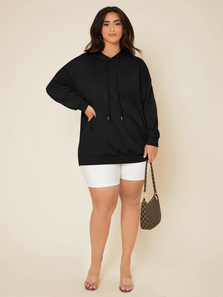 Große Größen Drop Shoulder Kapuzenpullover mit Kängurutasche