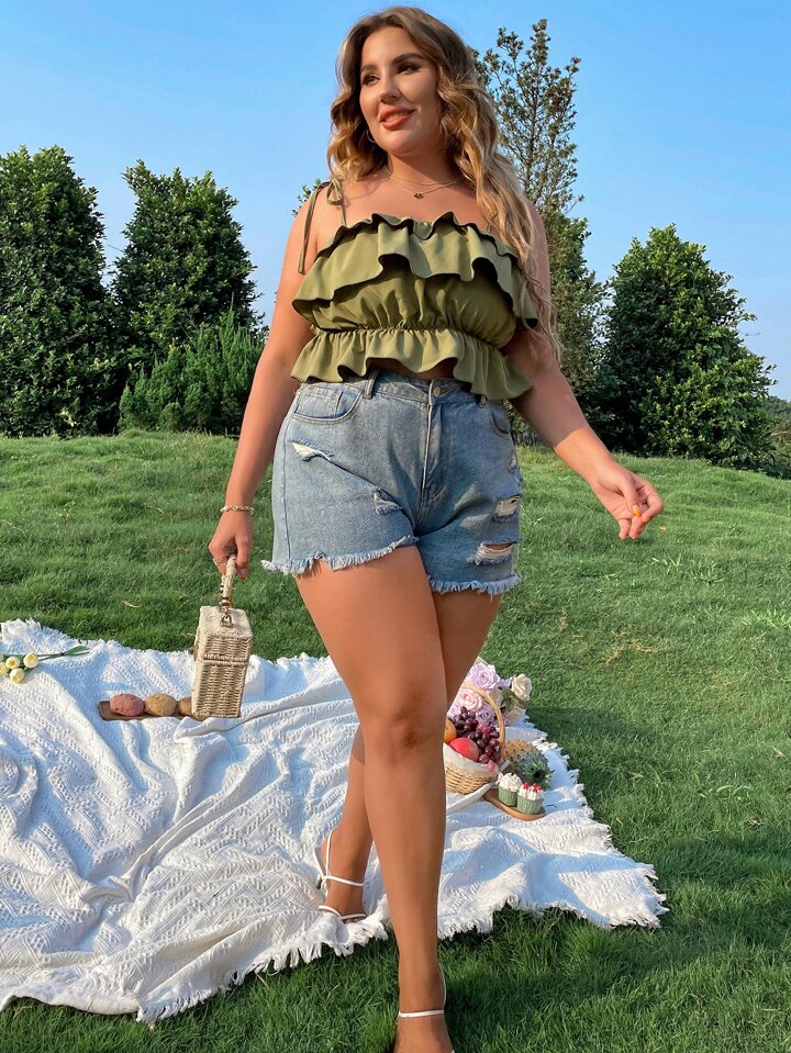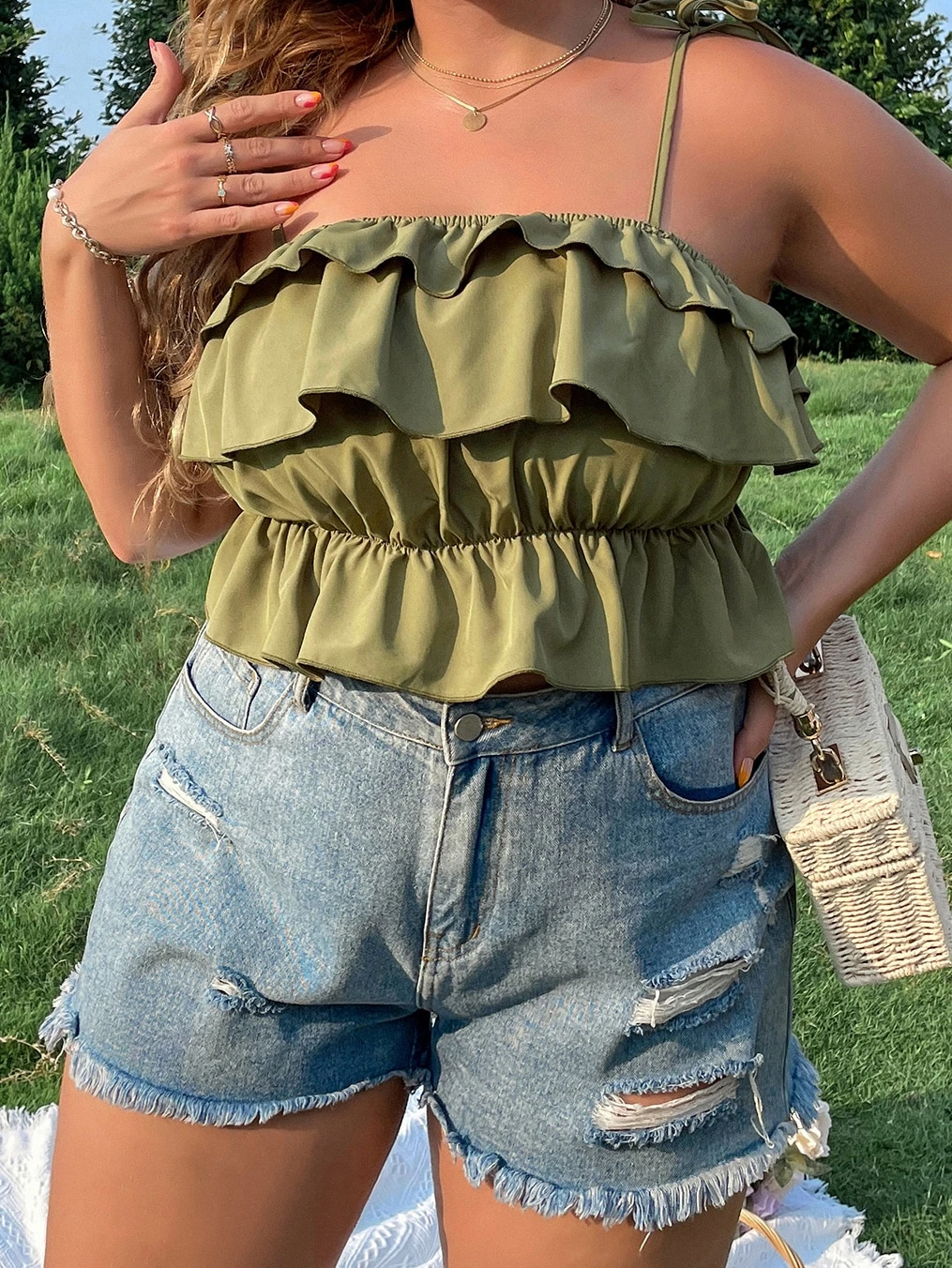 Cami Top mit Knoten auf Schulter, Rüschenbesatz