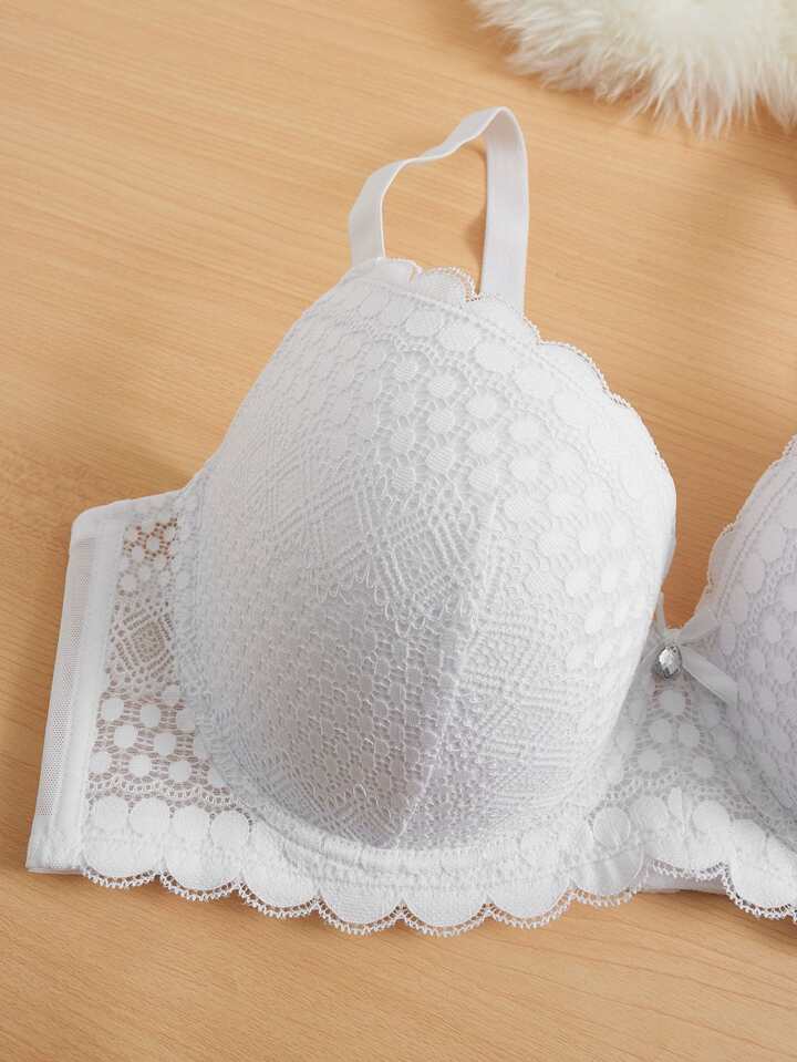 Große Größen BH mit Spitzeneinsatz, Schleifen-Vorderseite und Zackenkante, Push-up-Funktion, Dessous