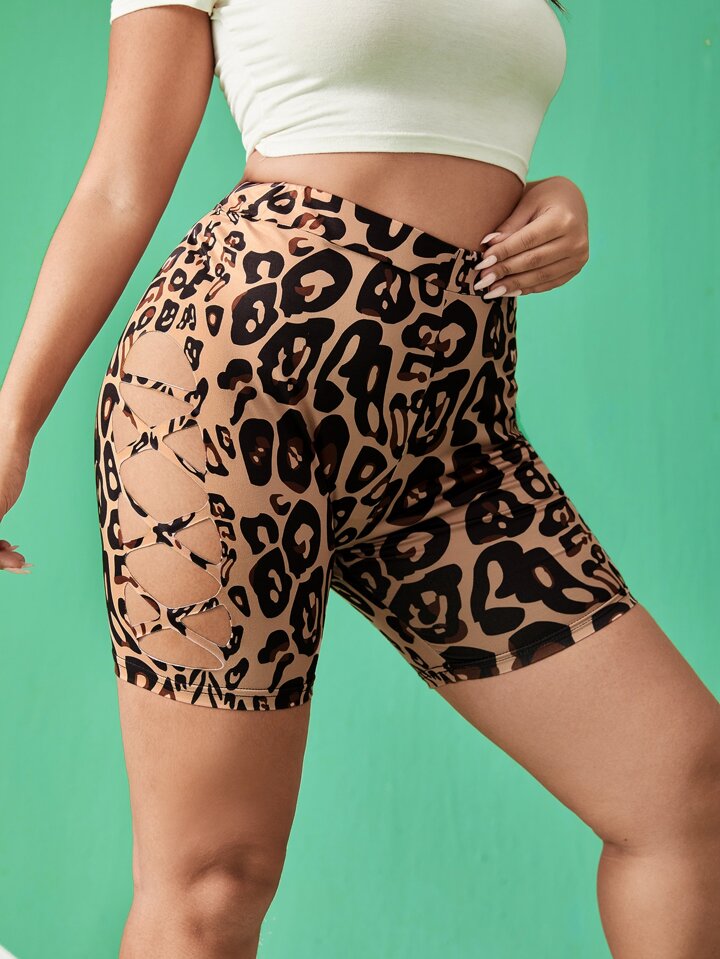Radlerhose mit Leopard Muster und Ausschnitt Seite