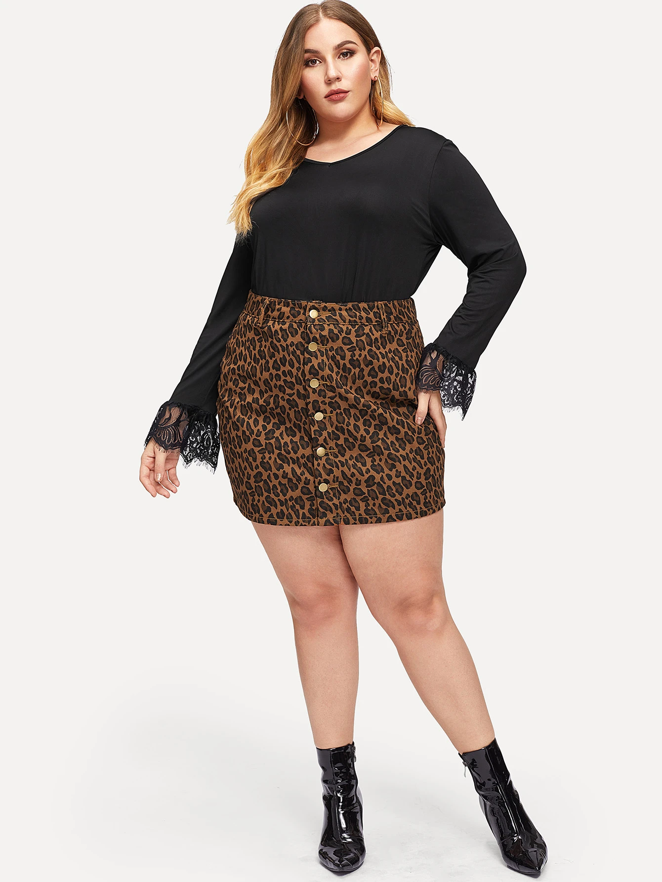 Übergroßer Rock mit Leopard Muster und Knöpfen vorn
