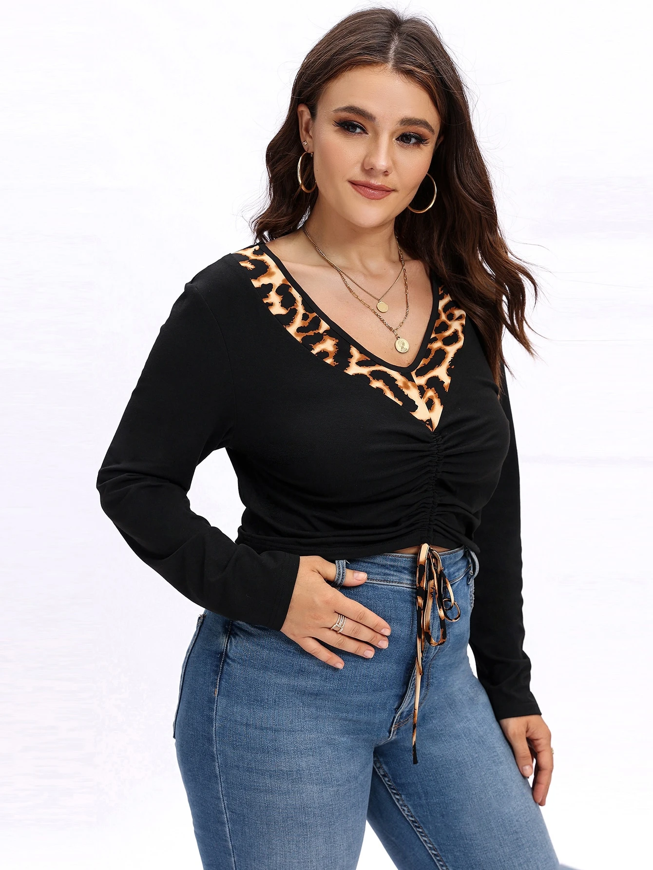 Top mit Leopard Muster, Schnürung vorne