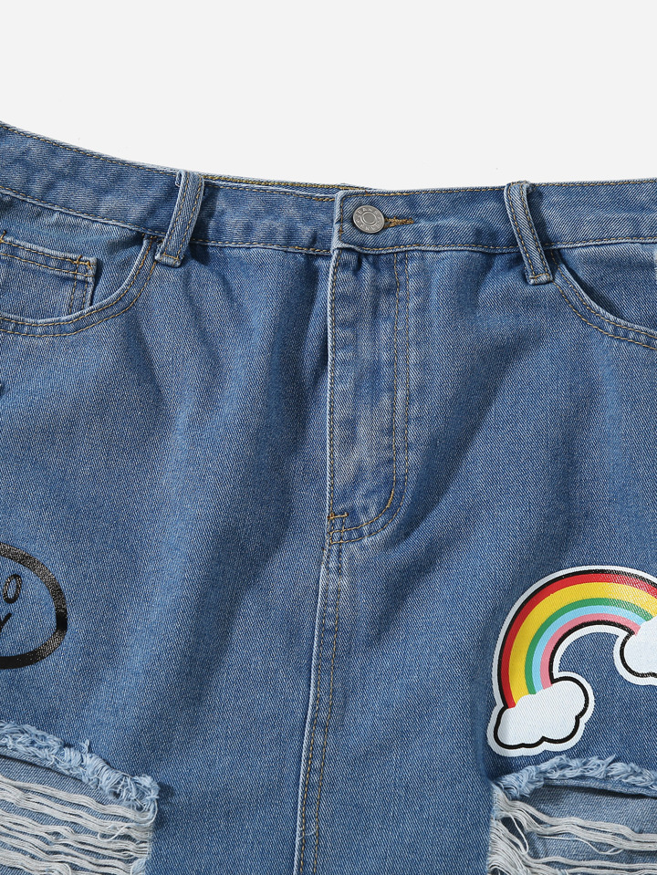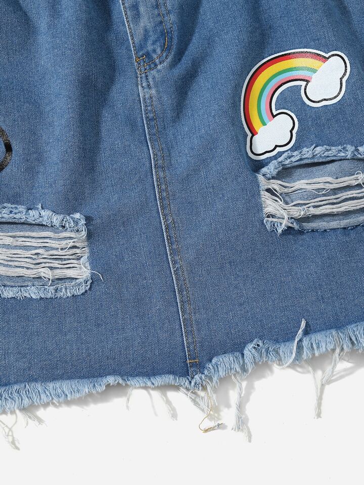 Jeansrock mit Buchstabe & Cartoon Grafik und Riss